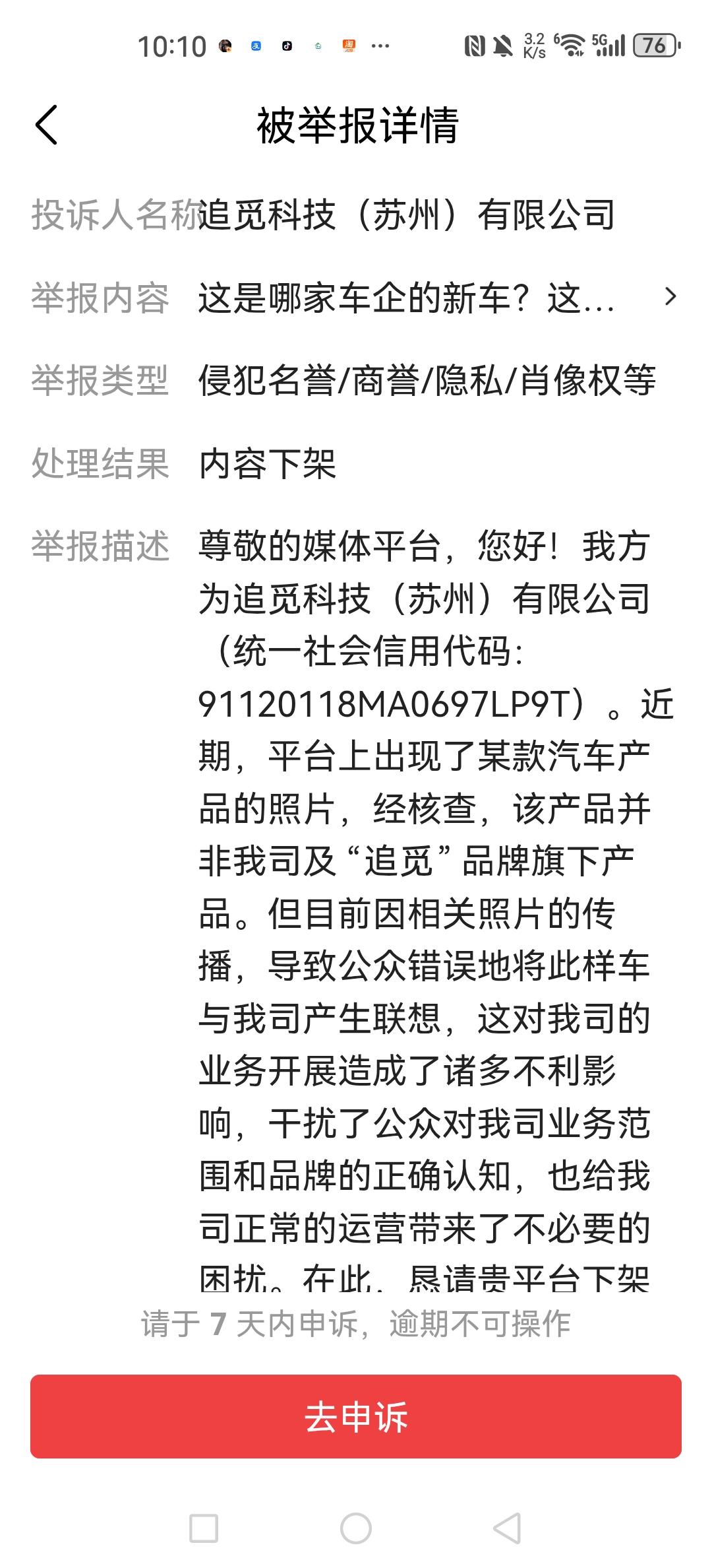 追觅否认此前出现的“宾利”为他们的车辆! 我发布的“宾利”的相关文章,被追觅投诉下架了,追觅的理由是“公众错误地将此样车对我公司产生了联想,这对我公司业务开展产生不利影响”。 关键都不是你公司的车,还投诉让相关的图片文章以及内容下架,这是不是在滥用投诉权力? 有意思的是平台不经过任何审核,还将这个投诉给成功通过了,也搞不懂这台车跟到底有什么关系,没有关系还投诉?追觅直接发个情况说明说这不是我们的车不就行了吗! 各位是怎么看的?欢迎评论区留言。