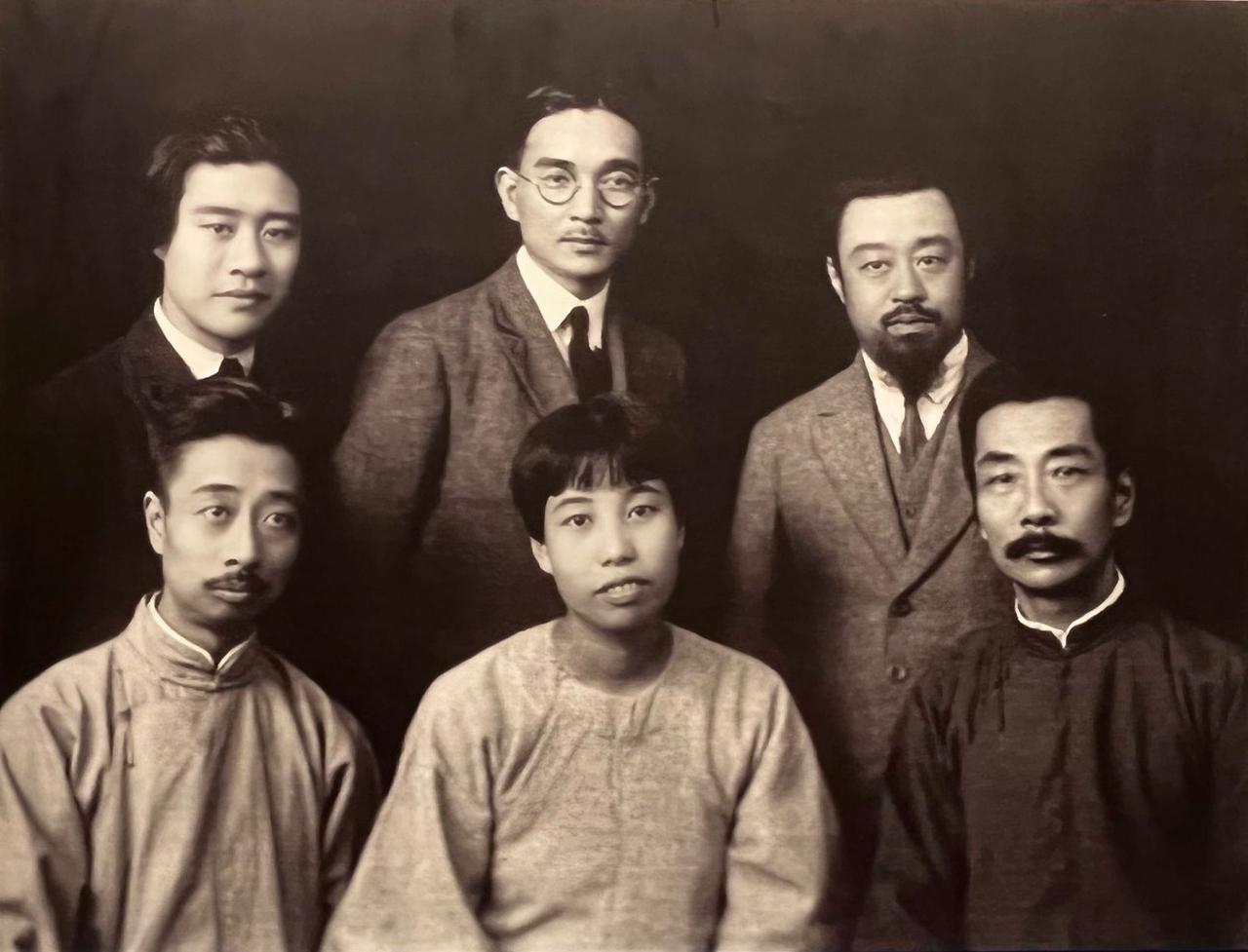 1927年10月4日,鲁迅夫妇和友人拍摄的一张合影,此时他们刚刚从广州迁居上海。 前排:周建人、许广平、鲁迅 后排:孙福熙、林语堂、孙伏园