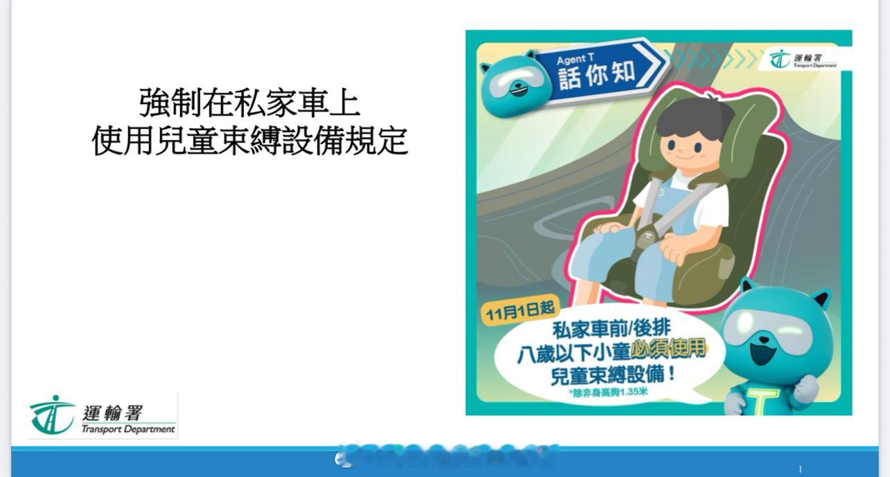 香港法律 「香港 十一月一日起兒童乘私家車須用兒童束縛設備..違例司機可被罰款…..」
