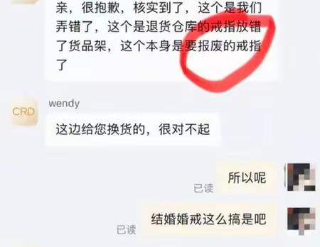 广东项先生婚礼上戴的CRD克徕帝婚戒,次日竟发现内壁刻着“文&静”,1760元买的新戒指疑似二手报废品。本文从事件经过、法律层面拆解、网友争议三方面,用大白话讲清消费者该维权的点,普及购物避坑知识,最后聊聊这事该怎么了结才合理。 一、婚礼刚过,婚戒里藏着“别人的爱情”? 家人们谁懂啊!结婚这么大的事,竟然被婚戒给膈应到了!广东的项先生最近就遭遇了这种糟心事,好好的婚礼回忆,全被一枚刻着陌生名字的戒指毁了。 10月初,项先生为了婚礼,在CRD克徕帝某平台官方旗舰店花1760元买了一款男士素金婚戒。10月16日婚礼当天,他和妻子开开心心交换戒指,当时只觉得戒指好看又有意义,完全没多想。结果婚礼第二天,项先生觉得戒圈有点紧,取下来想擦擦松松,这一擦直接傻眼了——戒指内壁居然刻着“文&静”两个字! 这可不是小事啊!婚戒象征的是自己的婚姻承诺,现在里面刻着别人的名字,难不成是别人戴过的二手婚戒?项先生越想越生气,好好的新婚喜悦瞬间没了,换成了满肚子的憋屈。 直到10月23日,他实在忍不住联系了记者曝光这事。克徕帝售后一开始还说可能是“发错货”,说临近双十一订单多,人工操作有错误率,要调监控核实是不是把别人的定制戒指发错了。后来核实完才说实话,承认这是把报废品发错了,中间流程出了问题,答应给项先生退换货,再送一份礼品。 更让人不解的是,克徕帝工作人员还说,定制戒指不能随便退换,售后的定制商品也得回仓重铸,绝对不能二次售卖。那问题来了,这枚刻着别人名字的报废品,怎么就从仓库流出来,当成新戒指卖给项先生了?工作人员嘴上说“不允许报废品流入市场”,可事实就摆在这,这流程漏洞也太大了吧! 二、法律不瞎!商家这波操作违法又缺德 可能有人觉得,不就是发错货了吗?退换了就行呗。但这事真没这么简单!从法律角度来讲,克徕帝的操作已经踩了好几个坑,项先生可别只满足于退换货。 首先,商家涉嫌欺诈消费者。根据《消费者权益保护法》第五十五条,经营者提供商品或者服务有欺诈行为的,应当按照消费者的要求增加赔偿其受到的损失,增加赔偿的金额为消费者购买商品的价款或者接受服务的费用的三倍;增加赔偿的金额不足五百元的,为五百元。项先生买的是“新婚戒”,商家却给了“报废品”,这明显是用有问题的商品冒充合格新商品,妥妥的欺诈啊!不是说退了货就完事了,项先生完全可以要求三倍赔偿,也就是1760元×3=5280元。 其次,商家违反了产品质量义务。《产品质量法》规定,销售者应当采取措施,保持销售产品的质量,不得销售失效、变质的产品。这枚刻着别人名字的戒指,已经是商家承认的“报废品”,根本不符合新商品的质量标准,商家把它当成正常商品卖,本身就是违法的。就算是双十一订单多,也不能成为把报废品流入市场的借口,人工操作有误差,但把报废品拿出来卖,更多是流程管控不到位,责任心缺失。 还有,平台也得担责任。平台方已经明确说了“商家是做错的一方,毋庸置疑”,那根据《电子商务法》,电子商务平台经营者知道或者应当知道平台内经营者销售的商品或者提供的服务不符合保障人身、财产安全的要求,或者有其他侵害消费者合法权益行为,未采取必要措施的,依法与该平台内经营者承担连带责任。虽然现在平台表态了,但如果后续不督促商家好好解决,项先生也可以把平台一起告上法庭。 简单说,项先生的维权底线绝不是“退换货+小礼品”,法律给了他要求三倍赔偿的权利,该争取的就得争取! 三、网友炸锅:这不是发错货,是不尊重婚姻! 这事一曝光,网友们的评论直接炸了,大家的观点出奇地一致——克徕帝太离谱了! 有网友说:“婚戒是一辈子的纪念啊!刻着别人的名字,这婚礼回忆都变味了,换谁谁能忍?”还有网友吐槽:“报废品回仓重铸是基本操作吧?这都能流出来,说明品控就是个摆设,双十一订单多不是借口,流程乱就别开门做生意!” 也有网友替项先生支招:“别要什么礼品!直接按法律要三倍赔偿,这是欺诈,不能惯着商家!”还有人分享类似经历:“我之前买定制首饰,商家发错货还想敷衍,后来我提了三倍赔偿,立马就老实解决了,消费者就得懂法维权!” 克徕帝发错报废婚戒这事,绝不是“小事一桩”。对项先生来说,这枚戒指承载着婚姻的意义,被刻着陌生名字的报废品替代,精神损失远比物质损失更让人难受;对其他消费者来说,这暴露了品牌品控和流程的巨大漏洞,谁能保证下一个买到报废品的不是自己? 目前商家只答应退换货加赠礼品,显然没意识到自己的违法行为和对消费者的伤害。项先生有权要求三倍赔偿,这不仅是为自己维权,也是在提醒商家:不能把消费者的信任当儿戏,更不能把法律当摆设。 最后想问问大家:你觉得项先生应该接受退换货+礼品,还是坚持要三倍赔偿?如果是你遇到这种事,会怎么处理?欢迎在评论区聊聊你的看法!