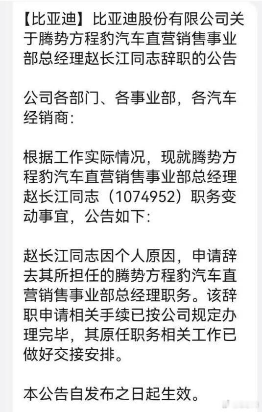 比亚迪赵长江辞职比亚迪赵长江回应离职传闻