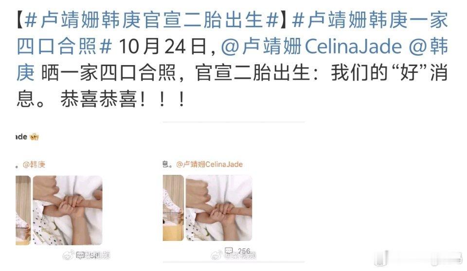 卢靖姗韩庚官宣二胎出生