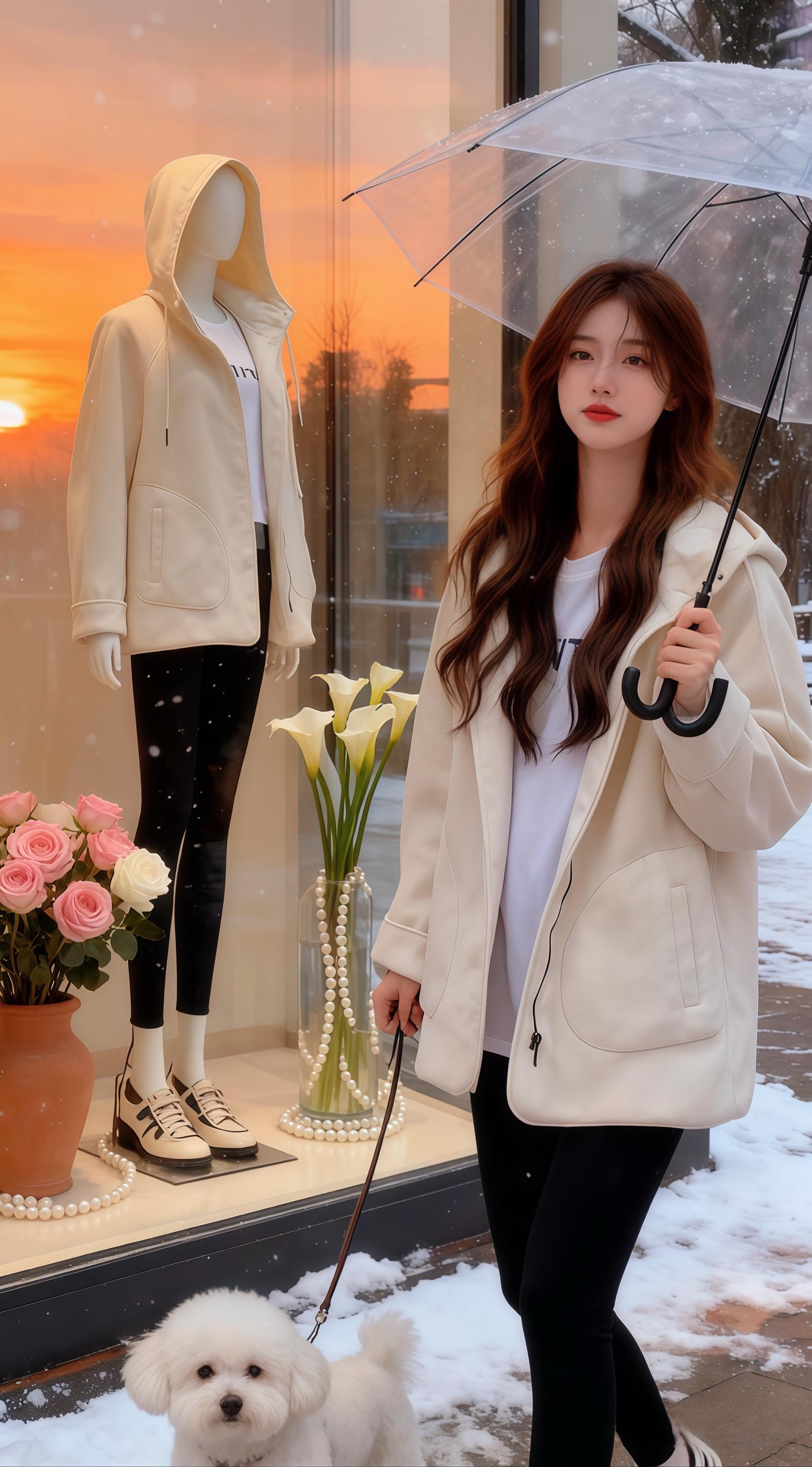 牵着比熊路过橱窗,同款外套在模特身上也一样治愈。网友都说,这是“冬日氛围感穿搭天花板”,可只有林晚知道,在这座快节奏的城市里,一件软糯的奶系外套,是她对抗寒意与疲惫的温柔铠甲。