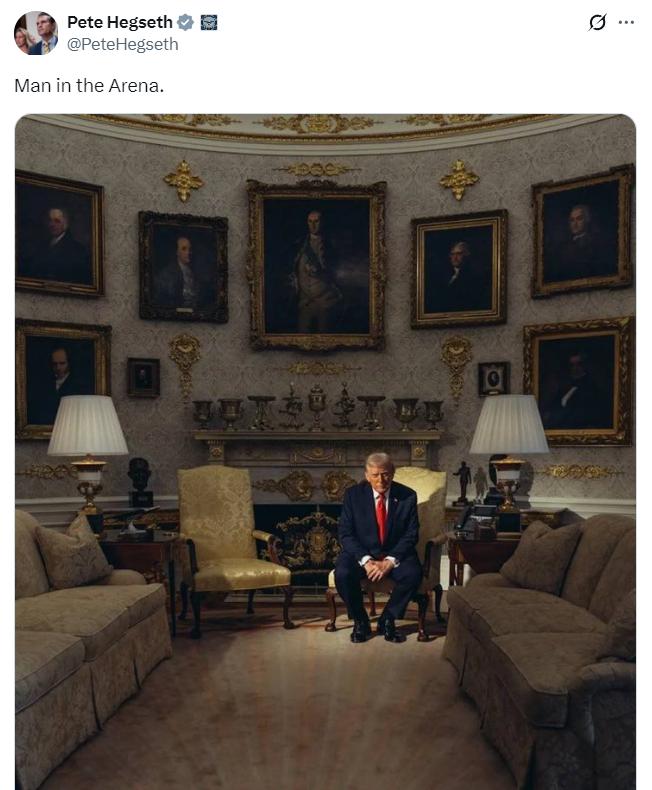 美国战争部长赫格塞思今日发帖:Man in the Arena.(竞技场上的男人。)