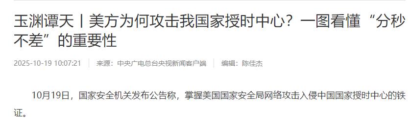 为什么美国不惜代价攻击我们的“授时中心”?别以为他们只敢搞芯片封锁,他们现在估计已经连“北京时间”都想给我们搞毁! 这么说吧,国家授时中心就是我们中国的时间中枢,是整个社会正常运行的心脏,一旦它遭到攻击,被瘫痪或是恶意篡改,造成的后果都将难以想象。 中科院授时中心的魏栋副主任早说过,这地方输出的“北京时间”差一微秒,国际股市就得波动几千亿;差一纳秒,北斗定位能偏出30厘米,5G通信直接断联;要是差到皮秒级,嫦娥飞船返回时能偏出几公里,整个航天任务全得泡汤,更别说我们70%的核电站、90%的特高压电网都靠它授时,真出问题就是全局性瘫痪,这可不是危言耸听。 美国国家安全局(NSA)显然比谁都清楚这点,不然也不会花两年多时间偷偷摸摸搞渗透,从2022年3月到2024年6月,他们跟挖地道似的从外围摸进核心区,先利用国外手机漏洞偷技术人员的工作笔记,再用偷来的凭证闯进内部系统,前后投了42款定制网络武器,分工明确得吓人——有的当“前哨站”,有的挖“数据隧道”,最后直奔核心授时基准数据下手,这些武器里还有“棱镜门”时期的老熟人“DanderSpritz”,换了层加密壳就想蒙混过关,可惜凌晨三点往境外传数据的反常举动还是露了马脚。 要说美国图啥,首先就得算经济账,现在上海证券交易所靠北斗授时把交易延迟压到0.3毫秒,全球67%的手机芯片都用北斗兼容方案,这意味着全球金融和科技产业链的“时间规则”正从GPS转向中国标准,对靠数字霸权收割全球的美国来说,这比抢了他家金库还难受,毕竟当年“银河号”因GPS被断信号漂泊33天的亏,我们记了三十年,现在轮到他们体会技术霸权旁落的焦虑了。 更要害的是国防与航天的根基,东风-41导弹靠北斗授时实现10米级精度,比GPS制导的战斧导弹还准;北斗与天启星座协同,能对第二岛链目标“发射即预警”,而这一切的核心,就是授时中心那台“6000万年不差1秒”的原子钟,这技术现在全球第一,美国自然眼馋,要是能篡改时间基准,等于直接废了我们高超音速武器和航天工程的瞄准镜,这种釜底抽薪的买卖,他们当然愿意下血本。 说穿了,这就是美国版的“时间战”预演,当年用“震网”病毒搞瘫伊朗核设施,用网络攻击让委内瑞拉18个州大停电,都是一个路数,捏软柿子先捏基础设施,只不过这次踢到了铁板,我们不仅抓了现行,还把攻击路径、IP地址、工具样本全摆到了联合国面前,连NSA旗下“方程式组织”的老底都扒了出来,更讽刺的是他们的攻击工具还在用十年前的架构,部分操作得手动关杀毒软件,所谓网络霸权早就没那么神了。 现在美国天天喊中国网络威胁,可自己30天能偷970亿条互联网数据,盯上授时中心搞战略渗透的也是他们,这种双标玩得再溜,也遮不住霸权焦虑的本质,我们在国际标准时间的权重从5.66%涨到19.51%,北斗全球用户突破15亿,这些不是靠抢来的,是靠三十年埋头搞自主创新拼出来的。 说到底,美国攻击授时中心,不过是黔驴技穷的表现,他们怕的不是一个时间中枢,而是中国打破技术垄断、掌握规则制定权的能力,可越急着下手越暴露短板,定制42款武器还偷不到核心数据,渗透两年被抓得现行,这种“不惜代价”更像自我消耗,毕竟时间这东西最公平,霸权想靠偷靠抢留住,从来都是痴心妄想。