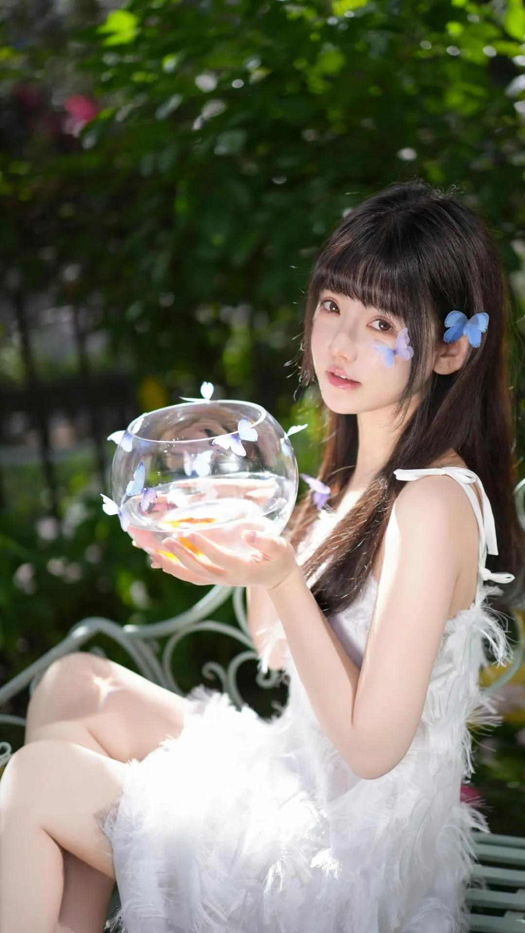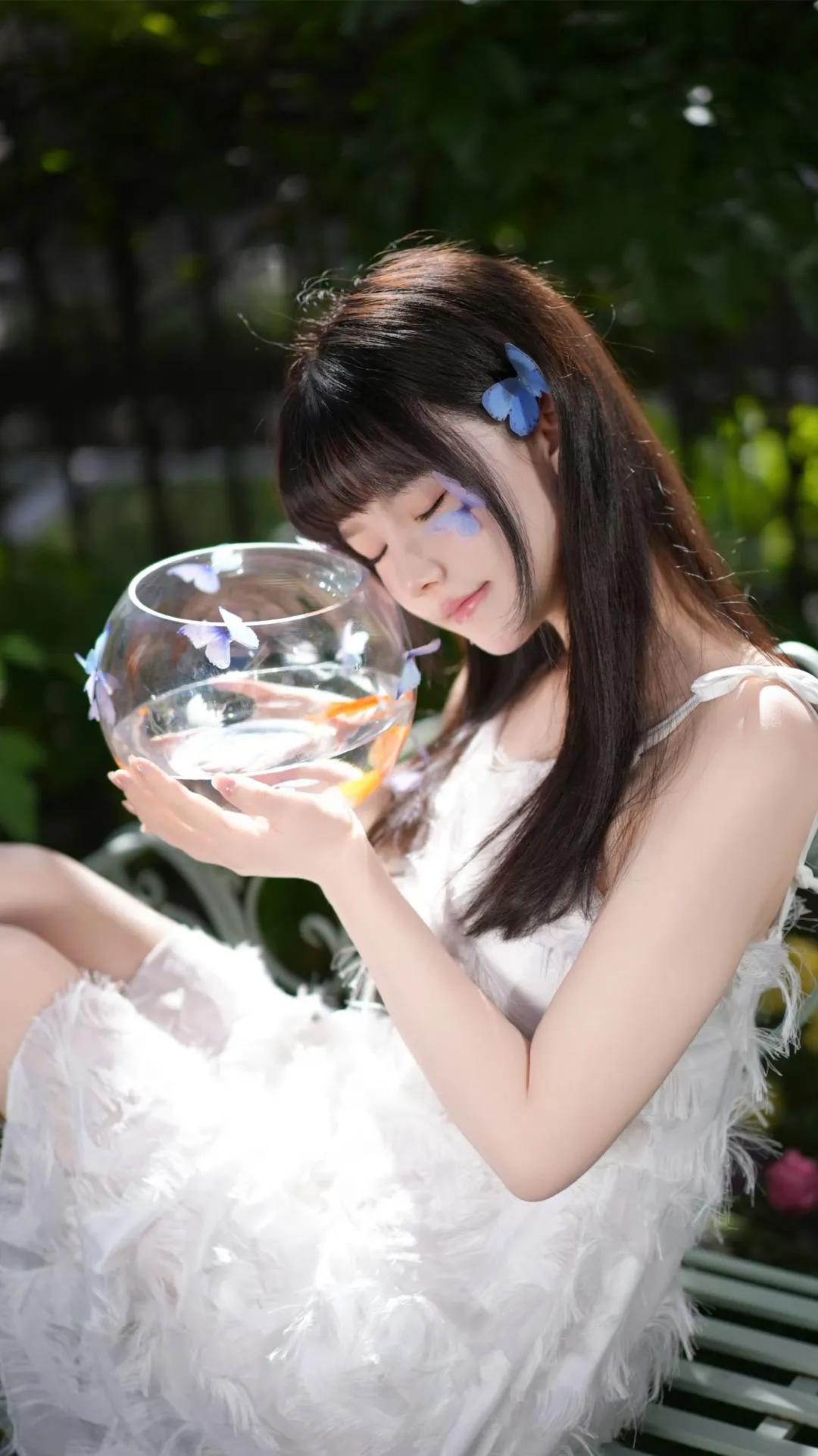 梦幻花园中的甜美少女,撑着透明伞,仿佛童话里的公主。
