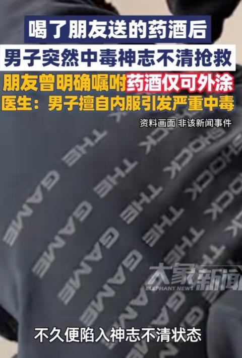 “这下后悔了吧!”10月23日,上海,一男子收到朋友送的“活血化瘀”药酒,他不顾朋友仅能外涂的嘱咐擅自饮用,结果引发严重中毒,神志不清直接倒地,网友:这是多大的酒瘾啊! 部分药酒仅能外涂不能内服,这是因为其中泡酒的药材有一定毒性,外涂时能发挥最大功效,一旦饮用,药材中的毒素就会进入体内,造成中毒。 一男子收到朋友送的药酒,朋友明确嘱托这药酒只能外涂,怕他误服朋友还特地多强调了几遍,男子嘴上答应着,其实对朋友的话左耳朵进右耳朵出。 这天凌晨,男子在家中打开药酒饮用了一些,喝完没多久,他开始感觉到有些神志不清,控制不了自己的身体东倒西歪,原来,朋友送的药酒中含有曼陀罗,一旦内服就会引发中毒。 家人发现男子时,他已经倒在地上,呼吸明显不对劲,见状家人赶紧拨打了120,将男子送往医院抢救,经过5天的昼夜不停地治疗,男子最终康复出院。 不少网友认为男子就是个“酒蒙子”,男子应该很后悔当时没听朋友的嘱咐,朋友本是一番好心,结果因为自己的行为演变成了这样,还好人救回来了,不然朋友得多自责! 信息来源:《男子擅自服用“朋友曾明确嘱咐仅可外涂”的药酒,引发严重中毒》大象新闻