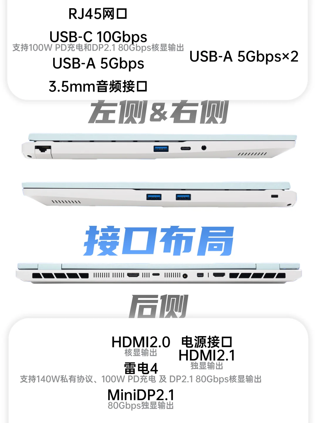 今年的机械革命 耀世15 Pro虽然便携性、散热没有明显进步,但模具确实是更新了的:处理器从HX55级别的i7-14650HX更换到H45的Ultra 7 255H,且接口数量变多了,A面也有用心设计。