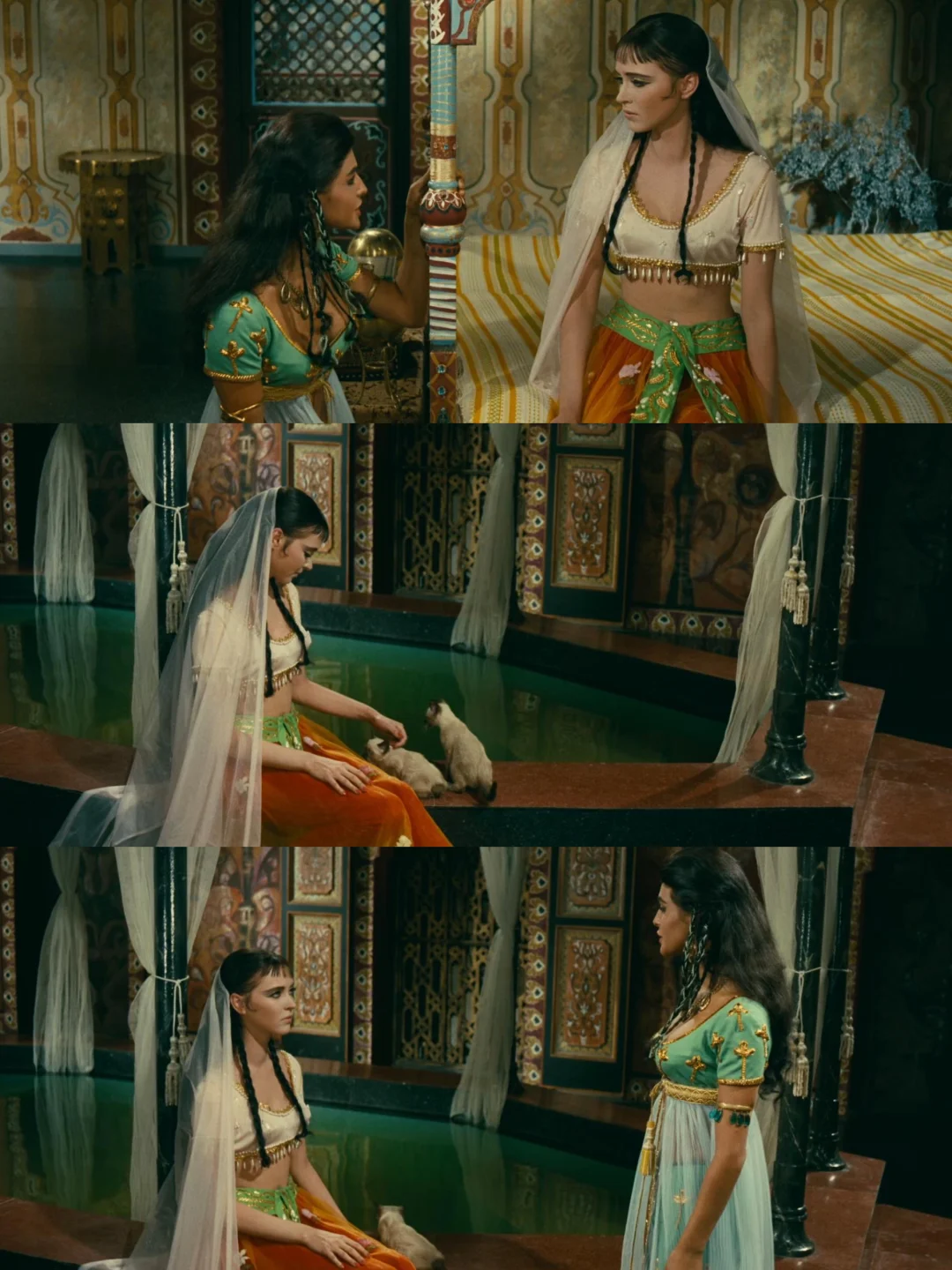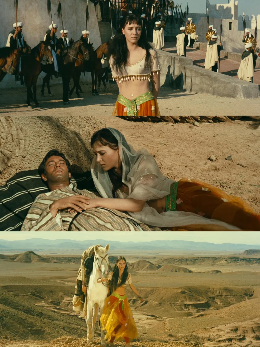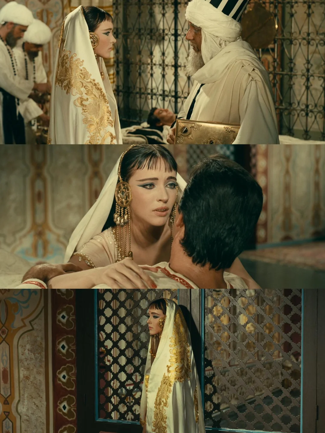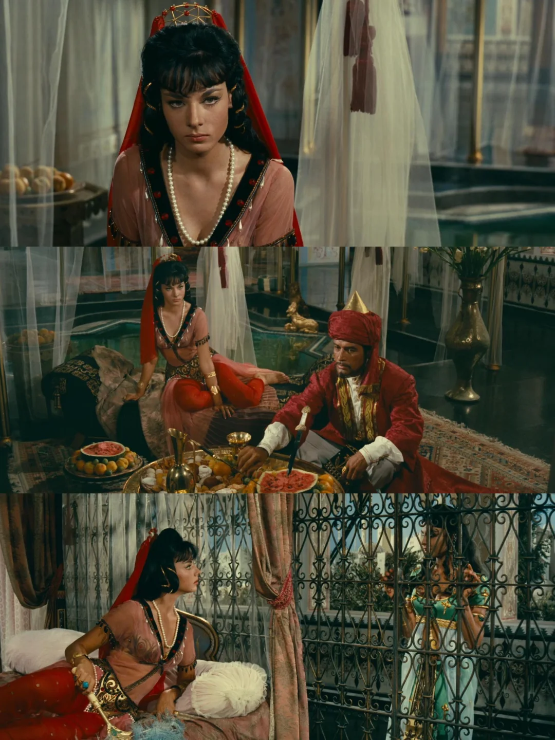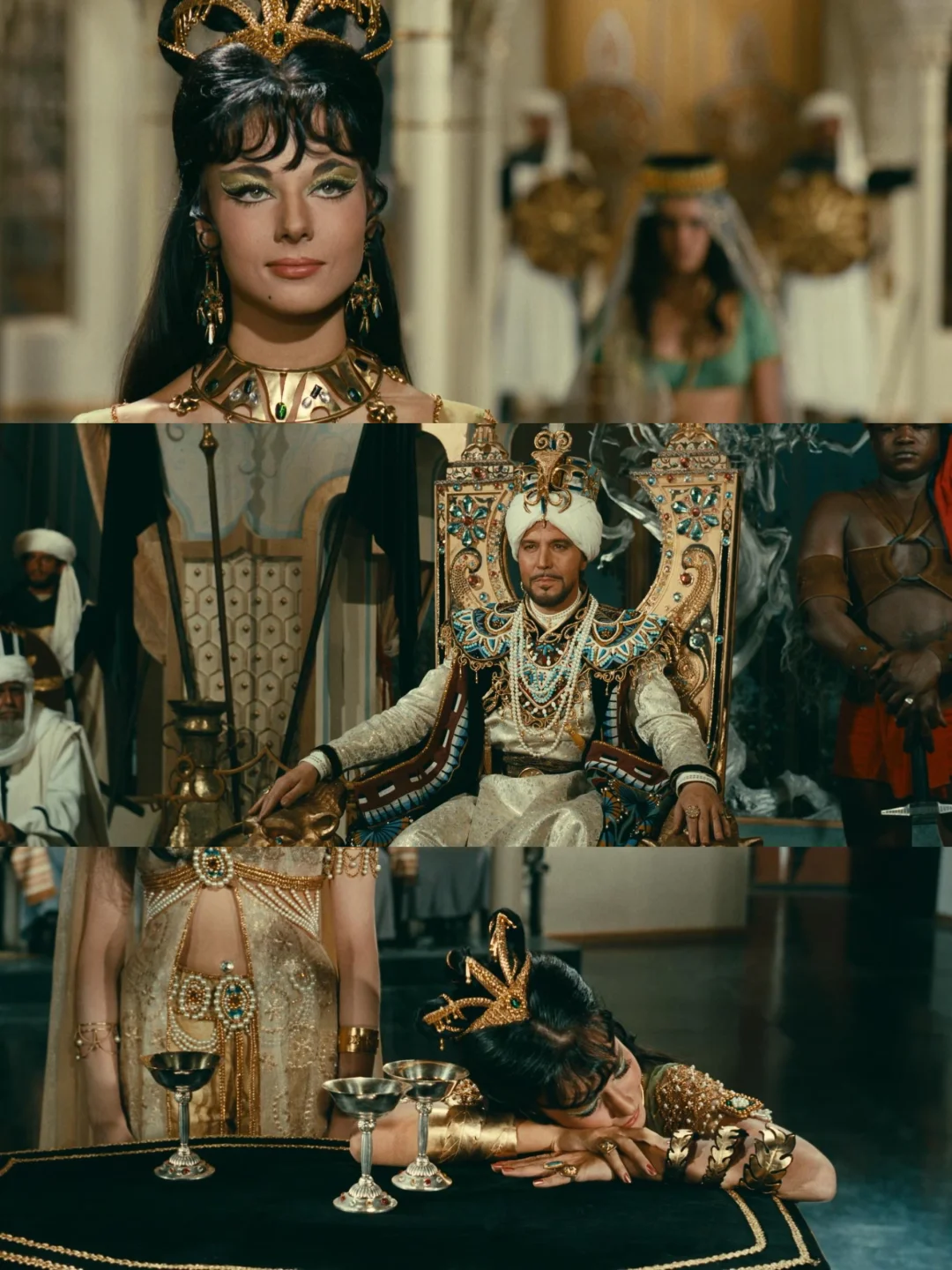 2️⃣虽然这部电影通常译为《天方夜谭》,但另一个译名《天方艳后》或直译《山鲁佐德》才是贴切的,因为它并不是我们熟知的一千零一夜故事集,而聚焦于山鲁佐德其人,进行了颠覆式的改编。