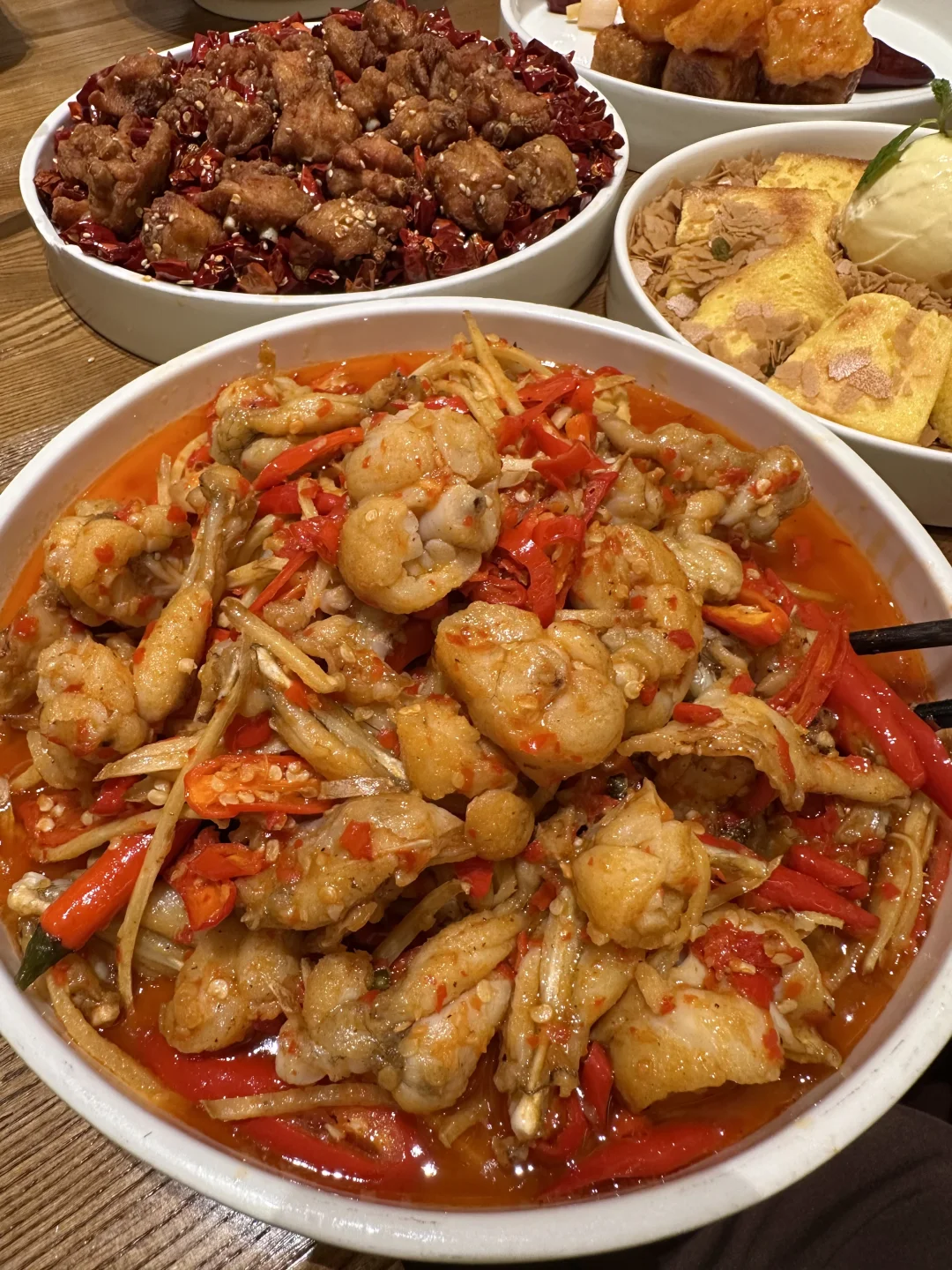 iPhone 16(石榴)夹酸奶 大酸奶球 一圈石榴果肉 好吃 牛蛙!!!姜仔和鲜辣椒入味 虾球也每次都会点
