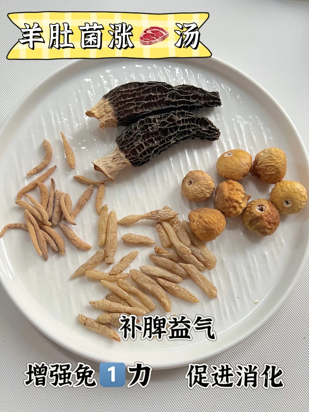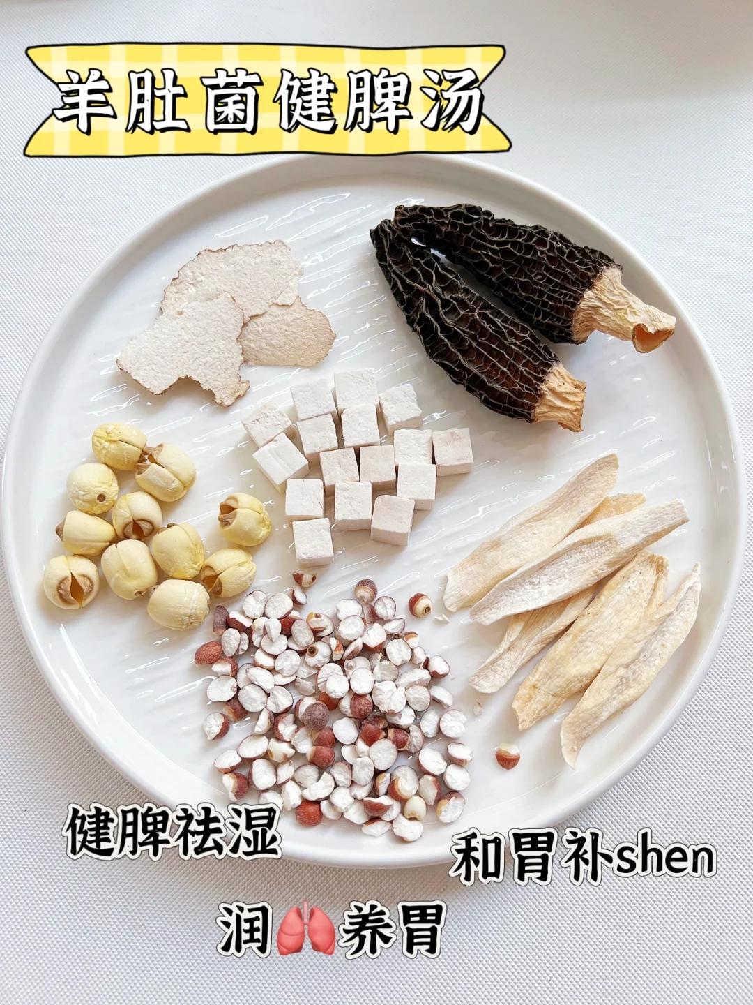 🥣材料:羊肚菌+莲子+茯苓+淮山+芡