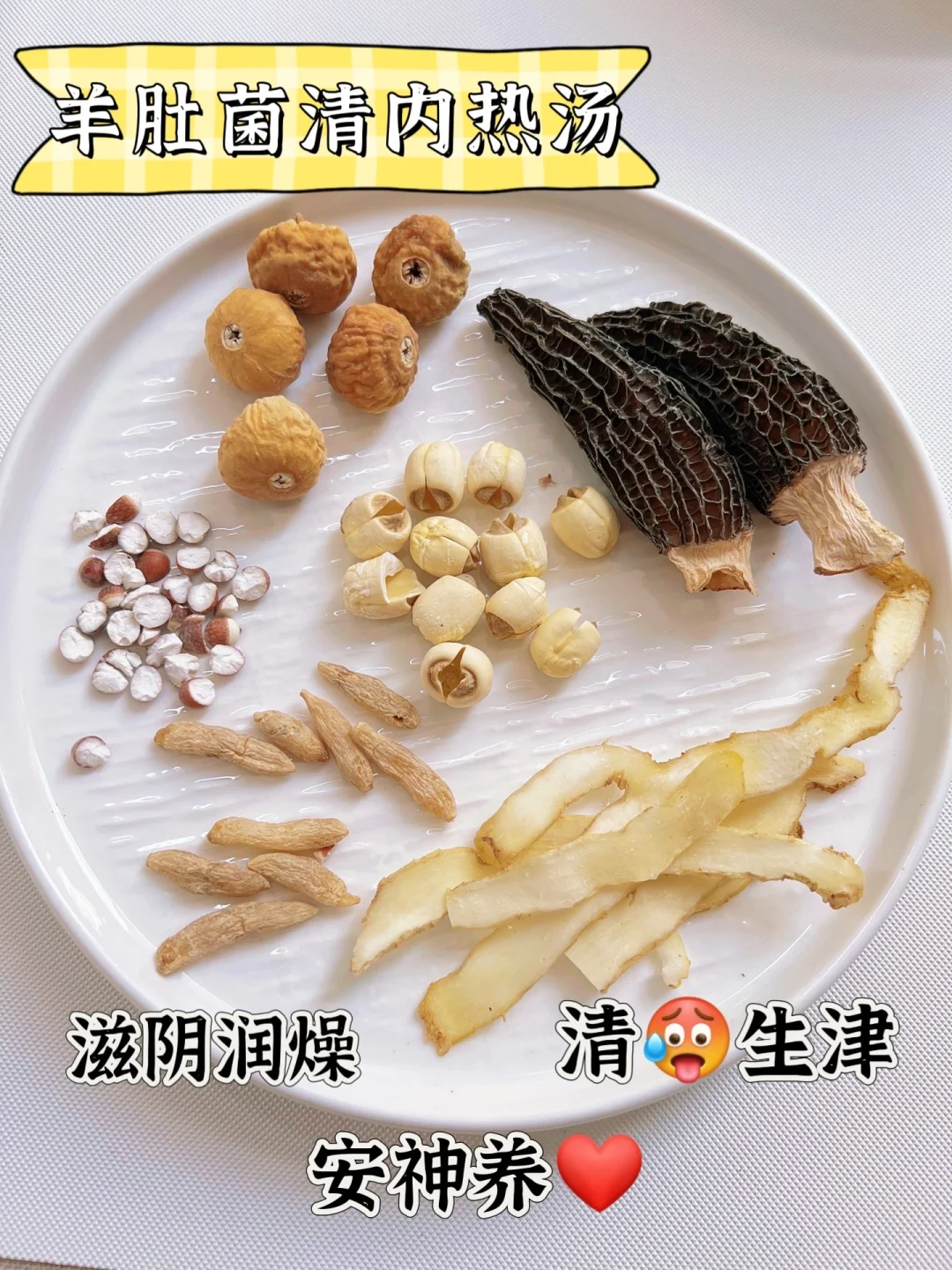🥣材料:羊肚菌+莲子+麦冬+无花果+玉竹十芡实