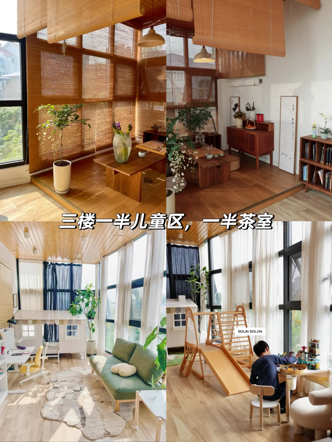 三楼是:两个卧室,一个茶室,一个儿童活动区