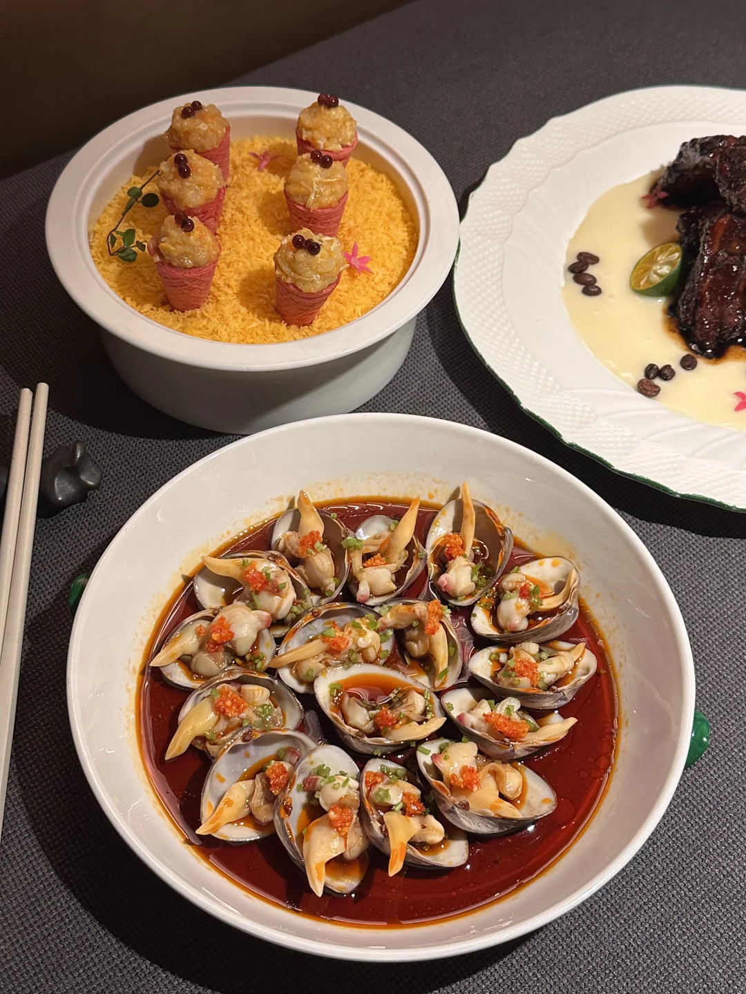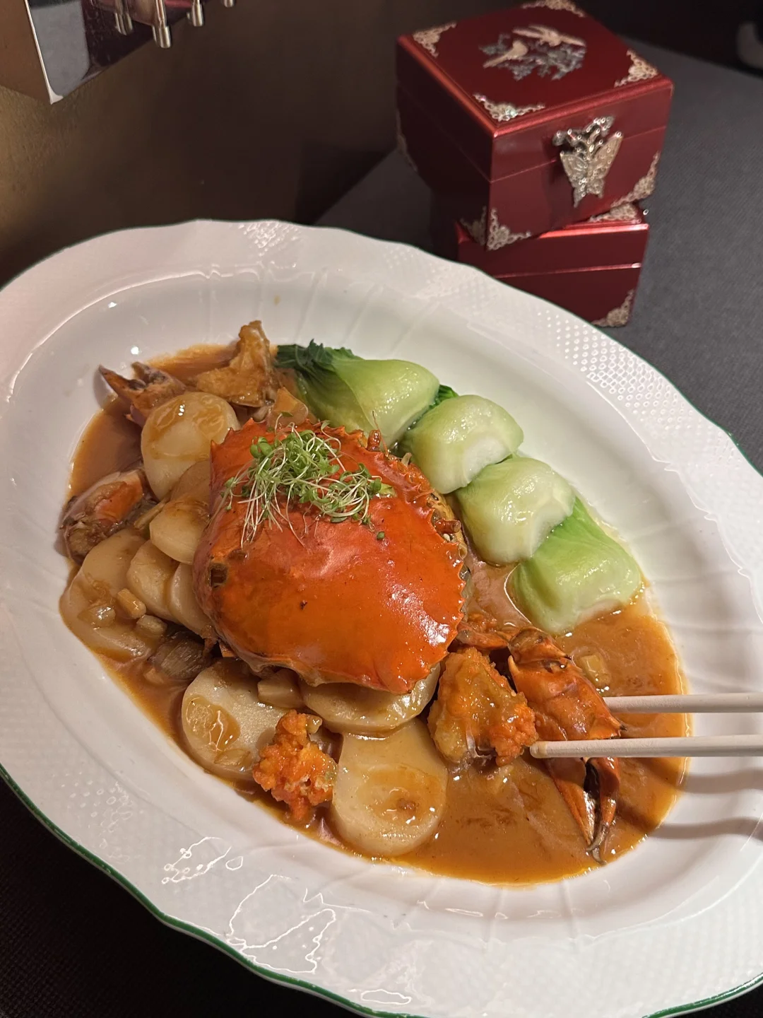 在德基,已经五刷了😭😭 每次来都是为了家烧膏蟹年糕 黄贡椒吊龙黄牛肉也很下饭 呛汁黄蚬,抹茶慕斯🍵也好吃