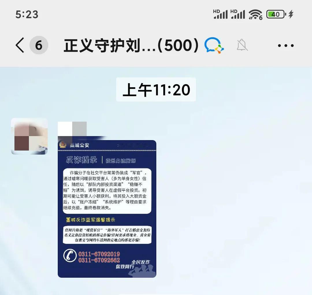 刚刚看到老家群里发的反诈提示: 警惕!有人伪装成“军官”,通过社交平台嘘寒问暖获取信任,再以“内部投资渠道”诱导你在虚假平台投钱,还可能让你把现金、黄金交网约车送指定地点。记住,这类打着婚恋交友名义让你投资转账的,全是诈骗! 全民反诈,你我同行! 这就是骗局 网上骗局 网络陷阱诈骗 防骗局知识
