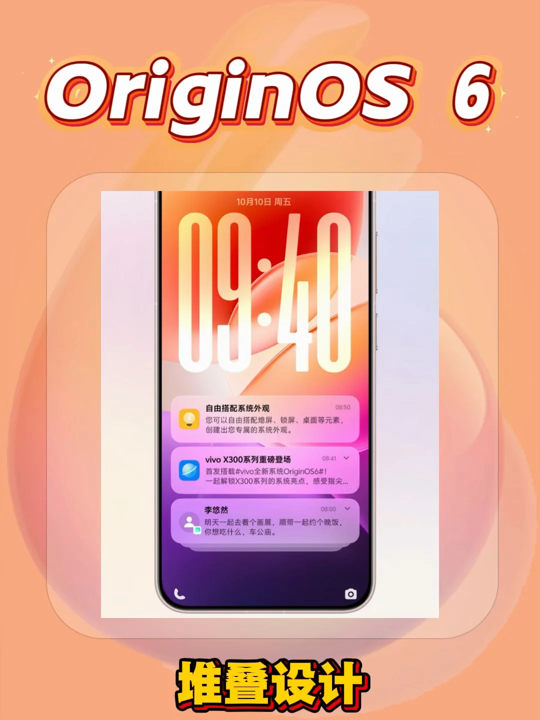 锁屏通知堆叠、后台堆叠,信息变得更加清晰有序,更具空间感!