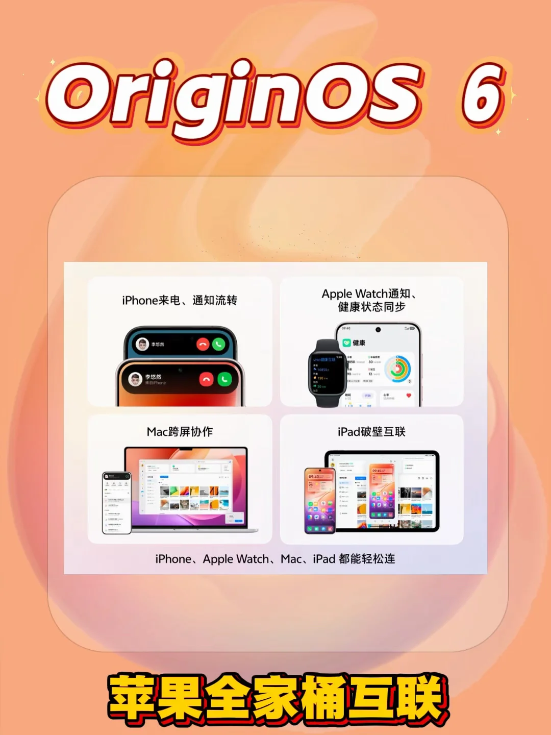 🍎手机通知流转,Watch手表信息实时同步,Mac跨屏协作高效办公,iPad破壁互联轻松上手,一机实现果子全家桶互联。