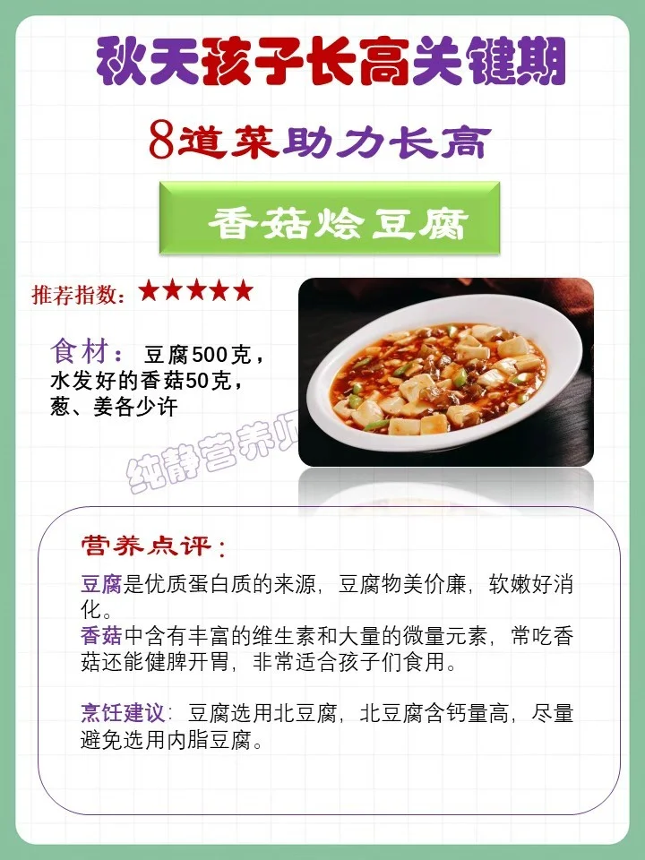一年中,春天是孩子们生长最快的季节,其次就是秋天了。老辈人常说,“转骨趁秋天”,意思就是说,秋天也是孩子拔节长个子的季节,别忽视了。家长们要抓住这段时间,合理安排孩子们的饮食,让孩子吃好一日三餐,吸收更多的营养,长得更高更结实。 秋天是孩子长高关键期,吃饭别凑合,常吃8道菜,精心选材,营养丰富,助力孩子长得高,长得结实。这8道家常菜,做法简单,大人孩子都爱吃,建议收藏。