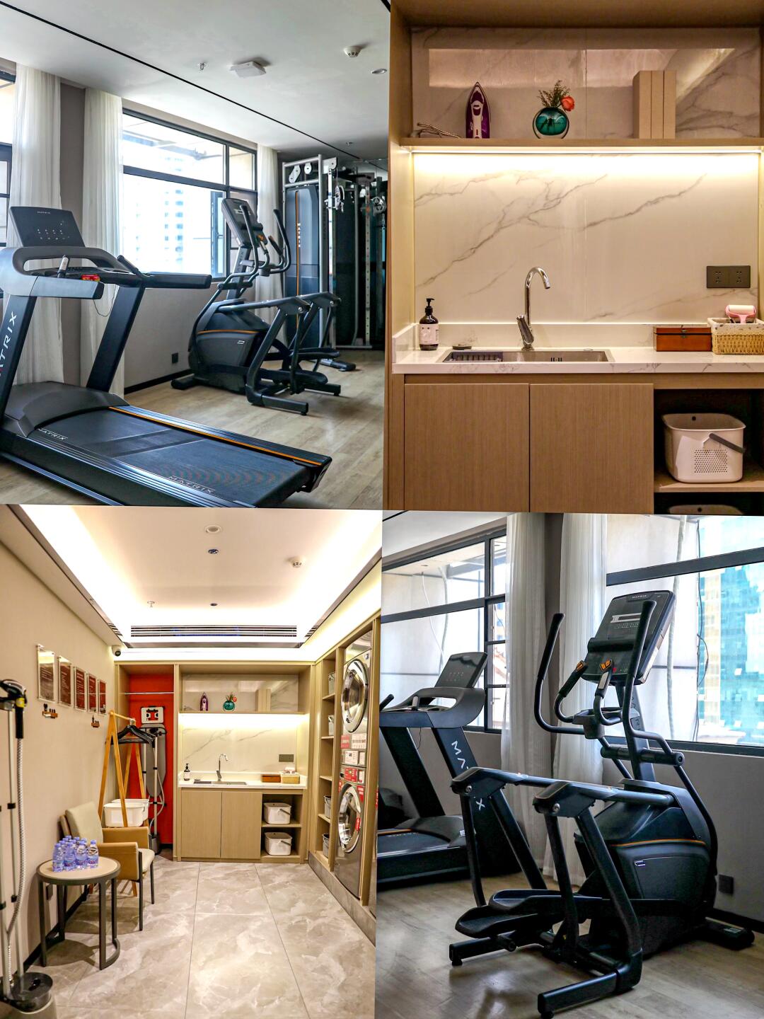 现代简约风的装修很舒服,床品软硬适中,卫生间干湿分离做得很好,打扫得特别干净,住着很安心还有洗衣间,健身房!真的太完美啦!