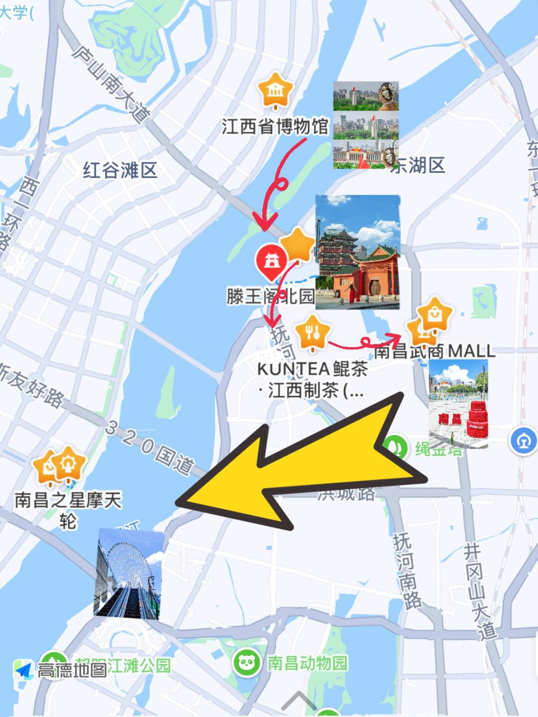 大士院➡️江西省博物馆➡️八一广场➡️万寿宫➡️滕王阁➡️南昌之星➡️万象城