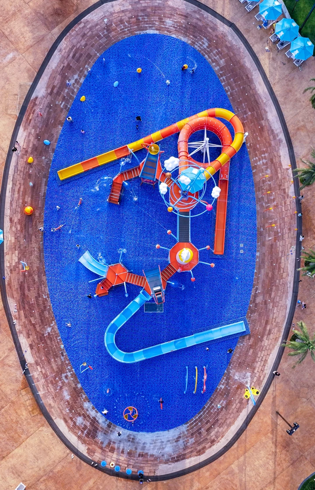 水上乐园,无边泳池还有300多米的海岸线就在眼前,