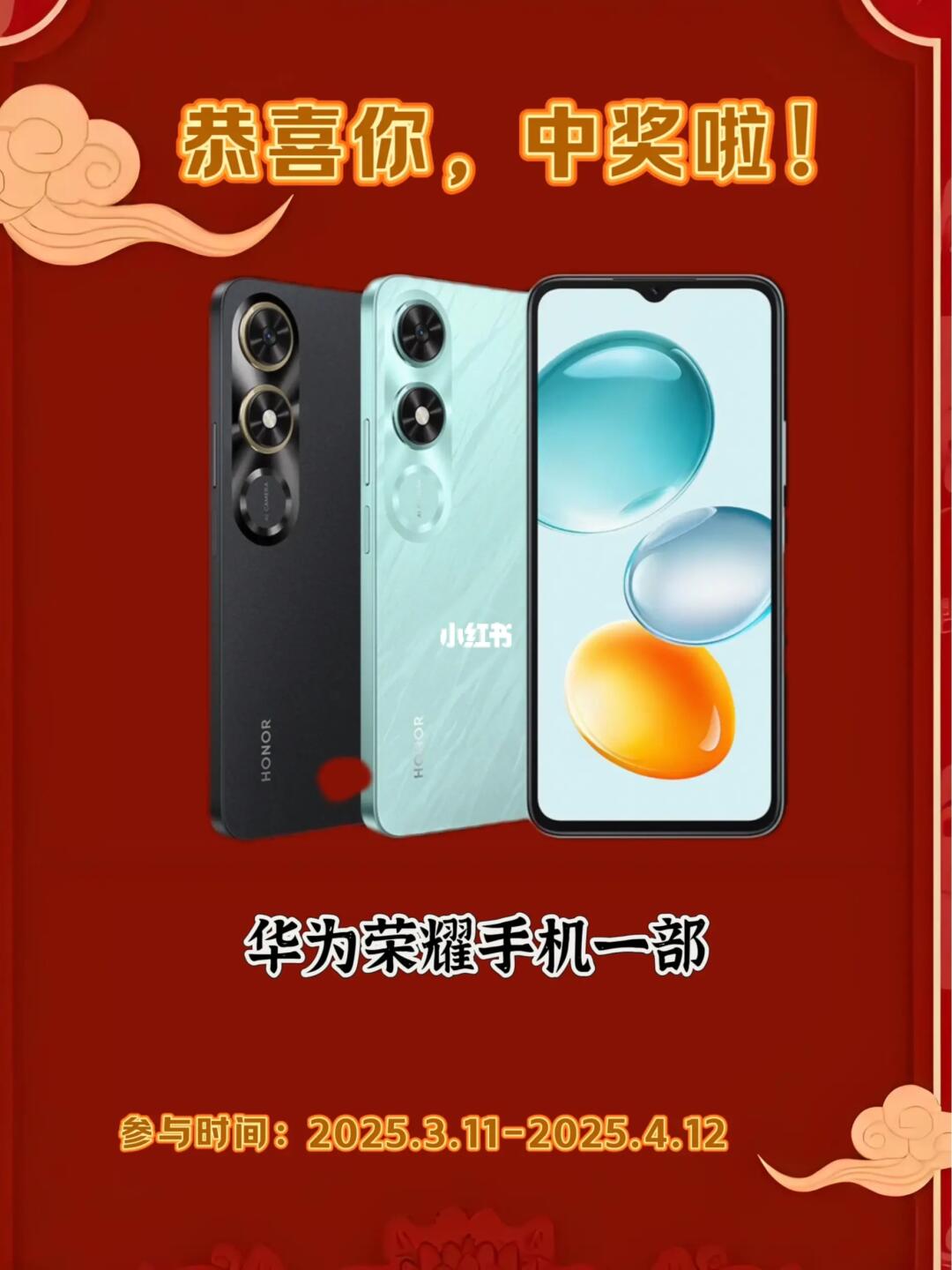 3月手机免费送 感谢大家的支持和鼓励!! 3月专门给宝子们准备了宠粉福利! 免费赠送华为荣耀手机📱!看谁是那个幸运儿可以得到讷! ❤️奖品名称:华为荣耀手机PLAY9C 一部(需4️⃣连) ⌚️参与时间:2025.3.11-2025.4.12 🎉开奖时间:2025.4.12.15:00 🧮参与方式:点击图片下方【限时抽奖】即可参与⚠️温馨提示:中奖后7天内,需要提供收货信息,逾期作废!!