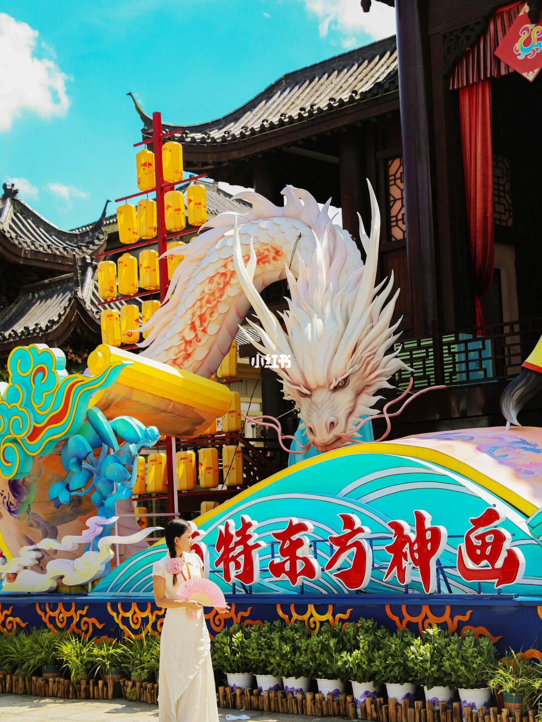 可以和npc合影哦,而且这里古风满满,还有粉色的神龙花灯🐲可以合影哦,分分钟出片!