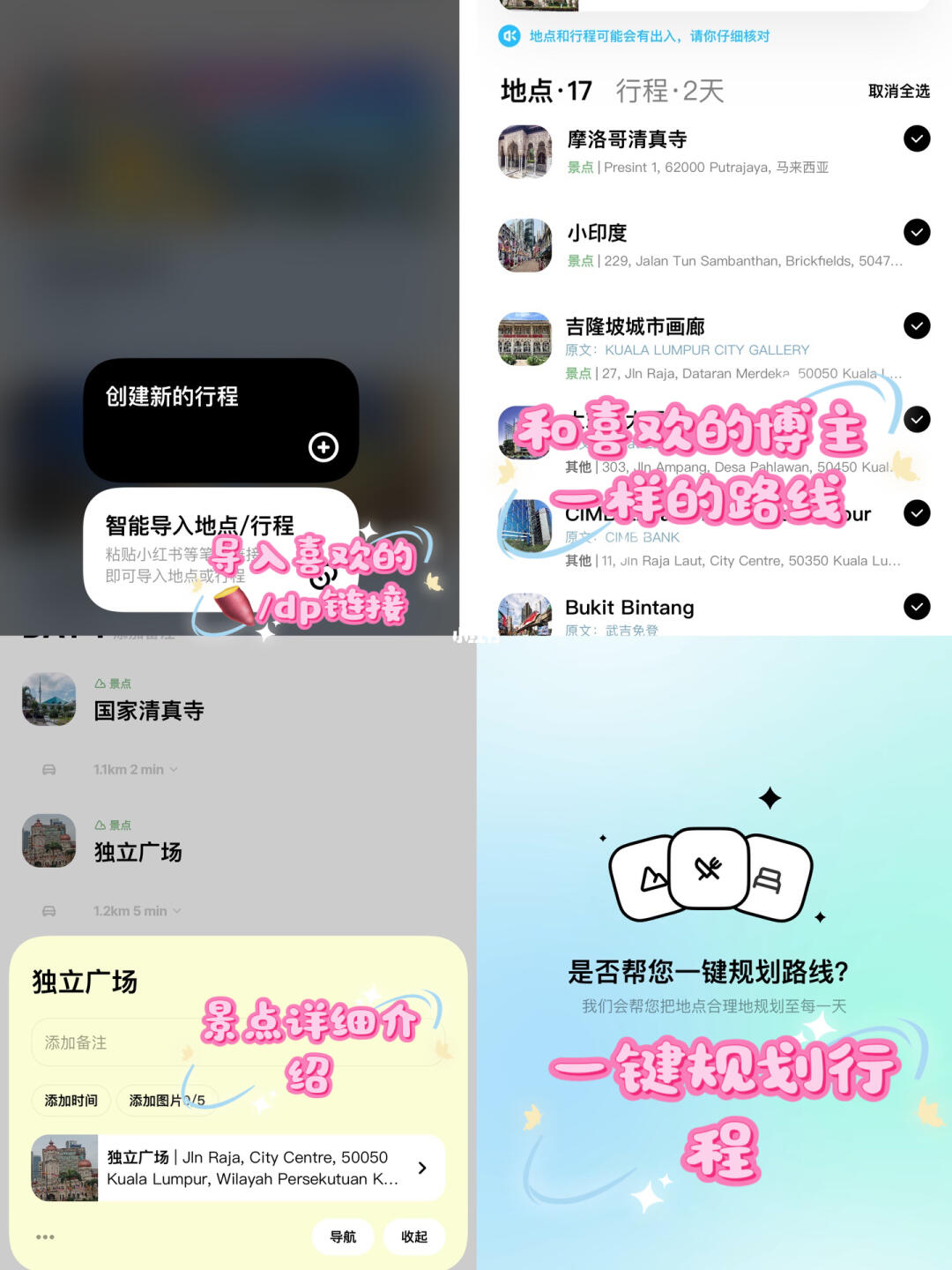 而且景点之间还会显示不一样的出行方式所花费的时间!对J人来说真的很方便啦!zui直观的还可以直接导航地图哦!
