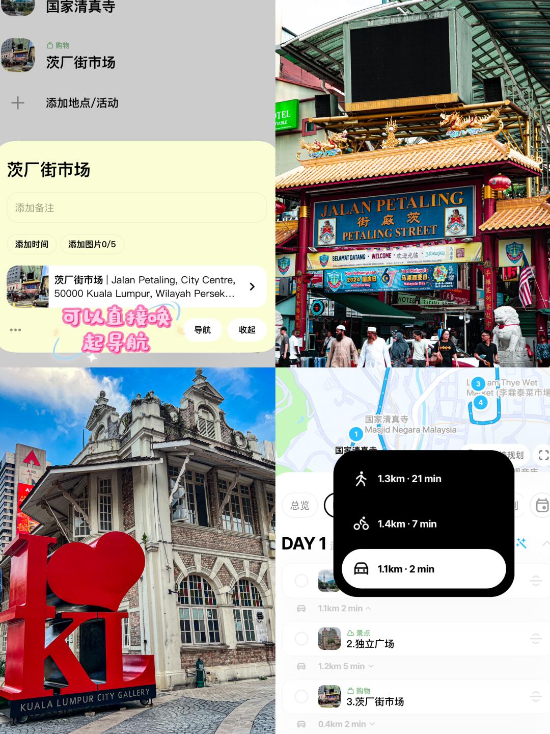Day1⃣️独立广场➡️城市画廊➡️茨厂街➡️粉红清真寺 Pavilion/乐天广场麦当劳➡️吉隆坡Pavilion/双子塔➡️mamam place
