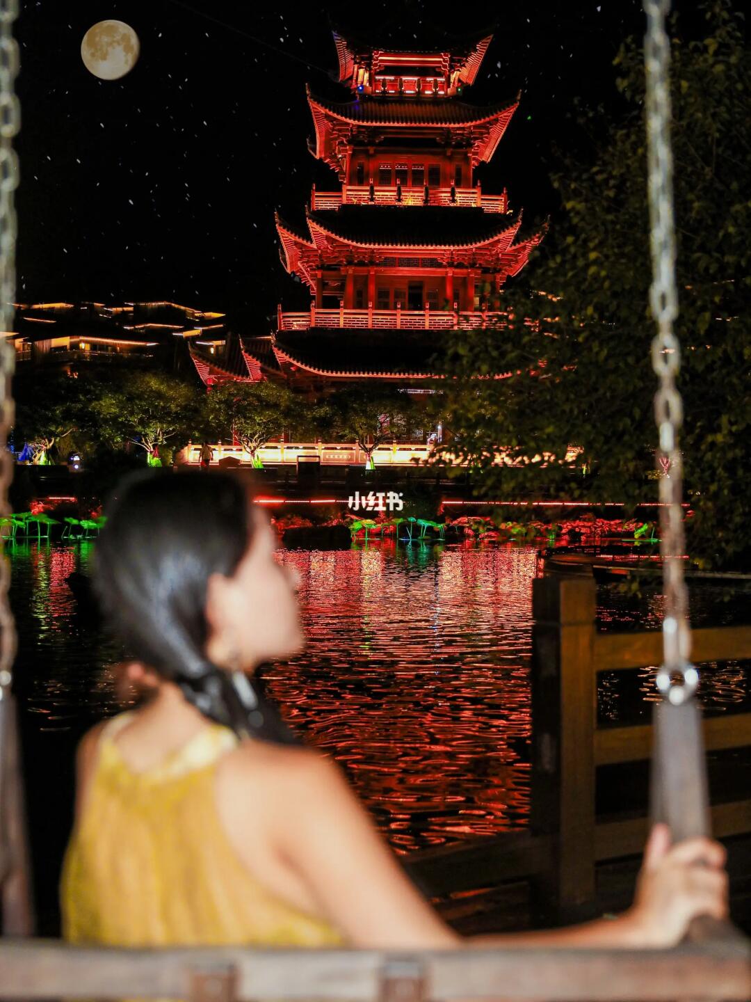 星星点点的灯火映衬其中,宛如坠入星河之中。🏊♂️🌌