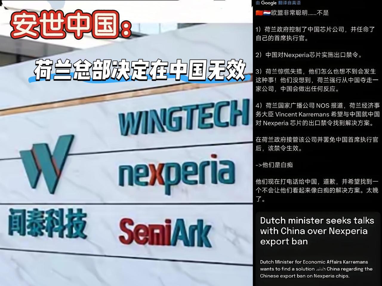 很好,正式切割!让海盗们抢了个寂寞,然后再付出相应的代价……这一切,都是为了我们海外资产今后的安全。 荷兰跟着美国起哄,冻结中资股权、罢免中方高管,以为攥住总部就掌控一切。结果安世中国直接喊话:你那决定在中国不好使,我们独立运营! 这可不是硬气话,安世70%的产能都在中国,东莞工厂年产几百亿件芯片,核心技术和供应链全在咱们这儿。这边一搞出口管制,荷兰总部立马成了空壳子,连员工工资都发不动。 更绝的是,安世中国不仅恢复供货,还改成人民币结算,彻底断了荷兰的念想。现在欧洲车企急得跳脚,荷兰大臣赶紧服软求谈判,这才看清谁才是产业链的真主人。