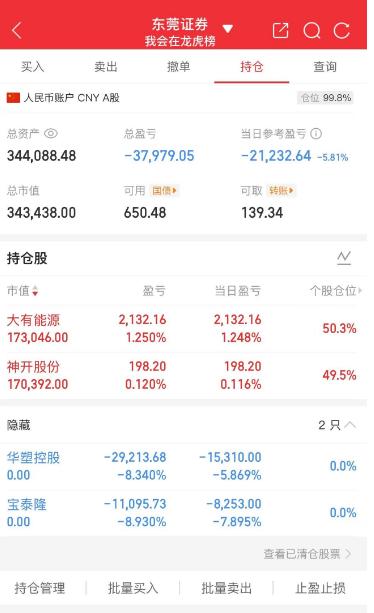 大曾子重回34万,毫无疑问,大曾子今天又是亏的,昨天我说了,他买的两个标肯定要割肉,果不其然,华塑差点跌停,宝泰也是深水,作为短线选手,大曾子肯定会出掉,转手他又去抄大有,估计是想博龙头首阴吧,还买了点神开,这票换手率大高,明显放量了,而且尾盘居然没回封,不知道周一会不会反包呢?其实神开昨天是上车点,今天肯定要出掉的,大有错过机会,只能放弃