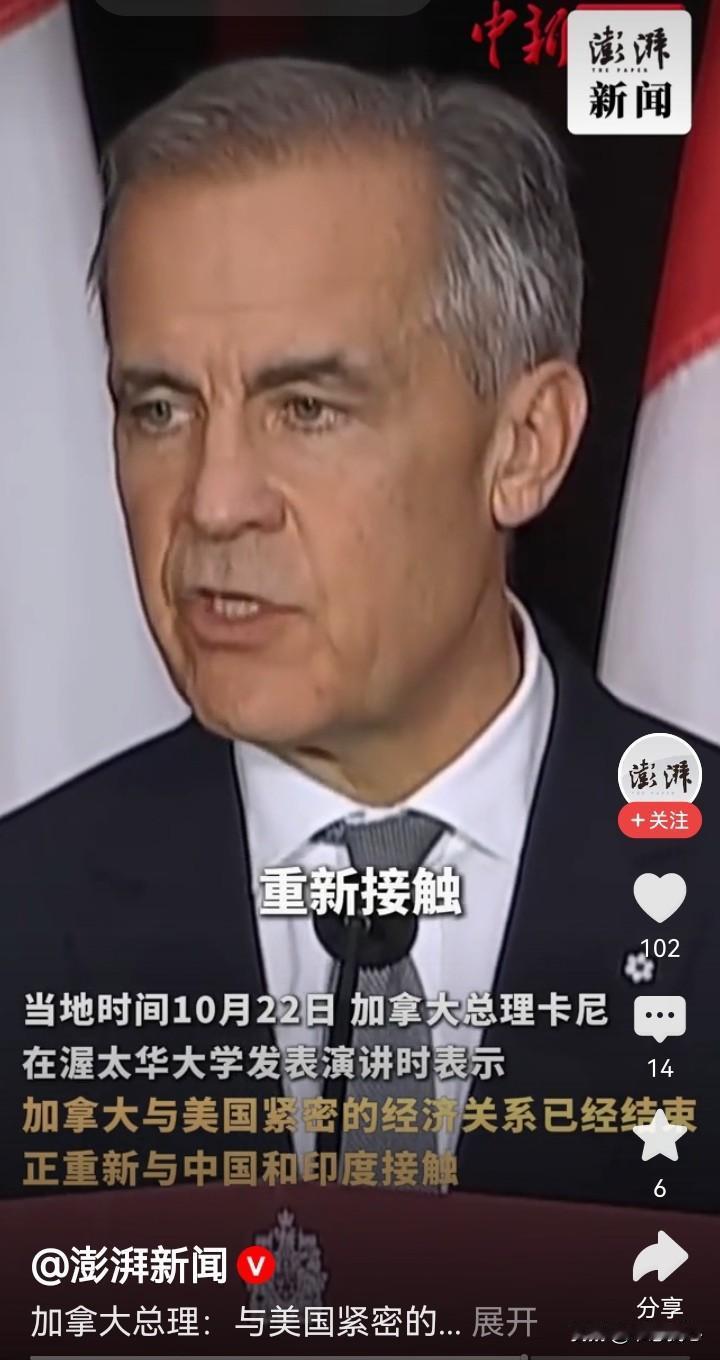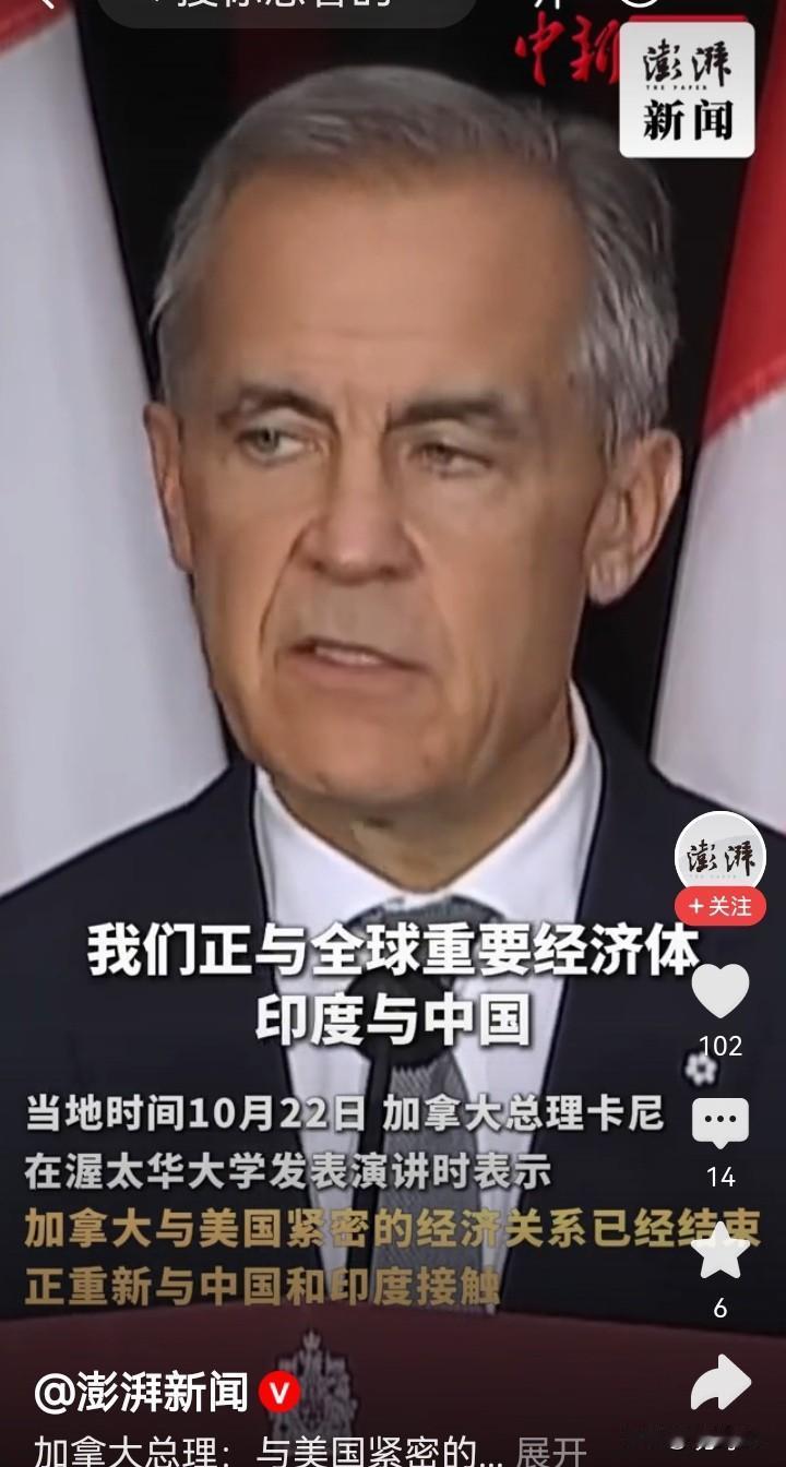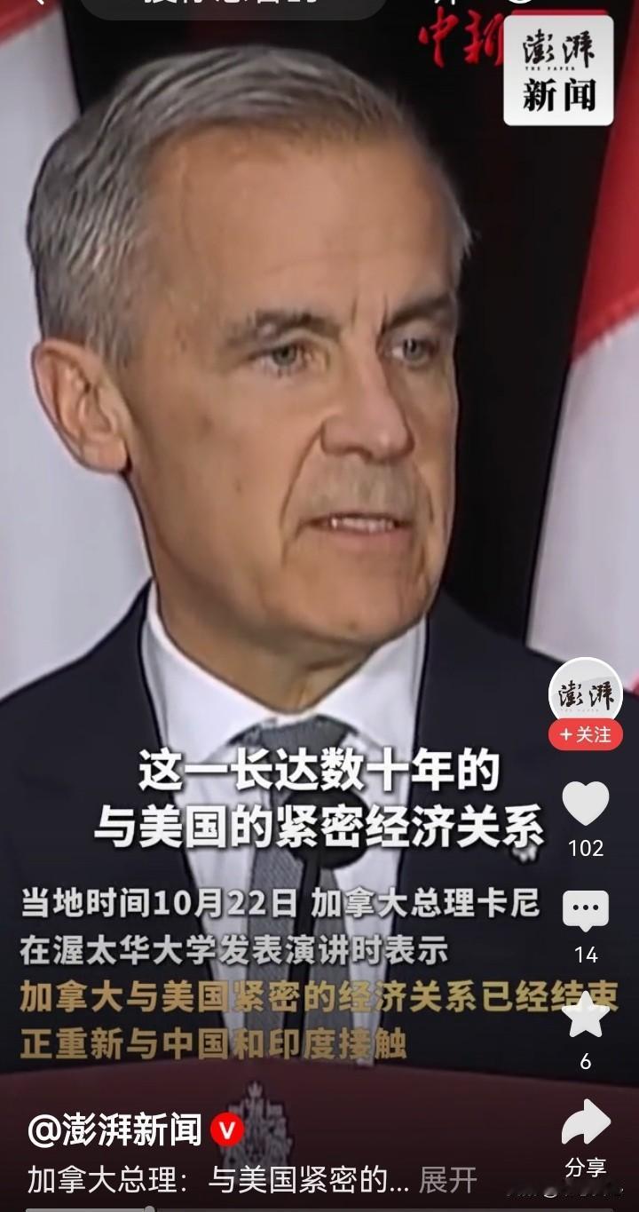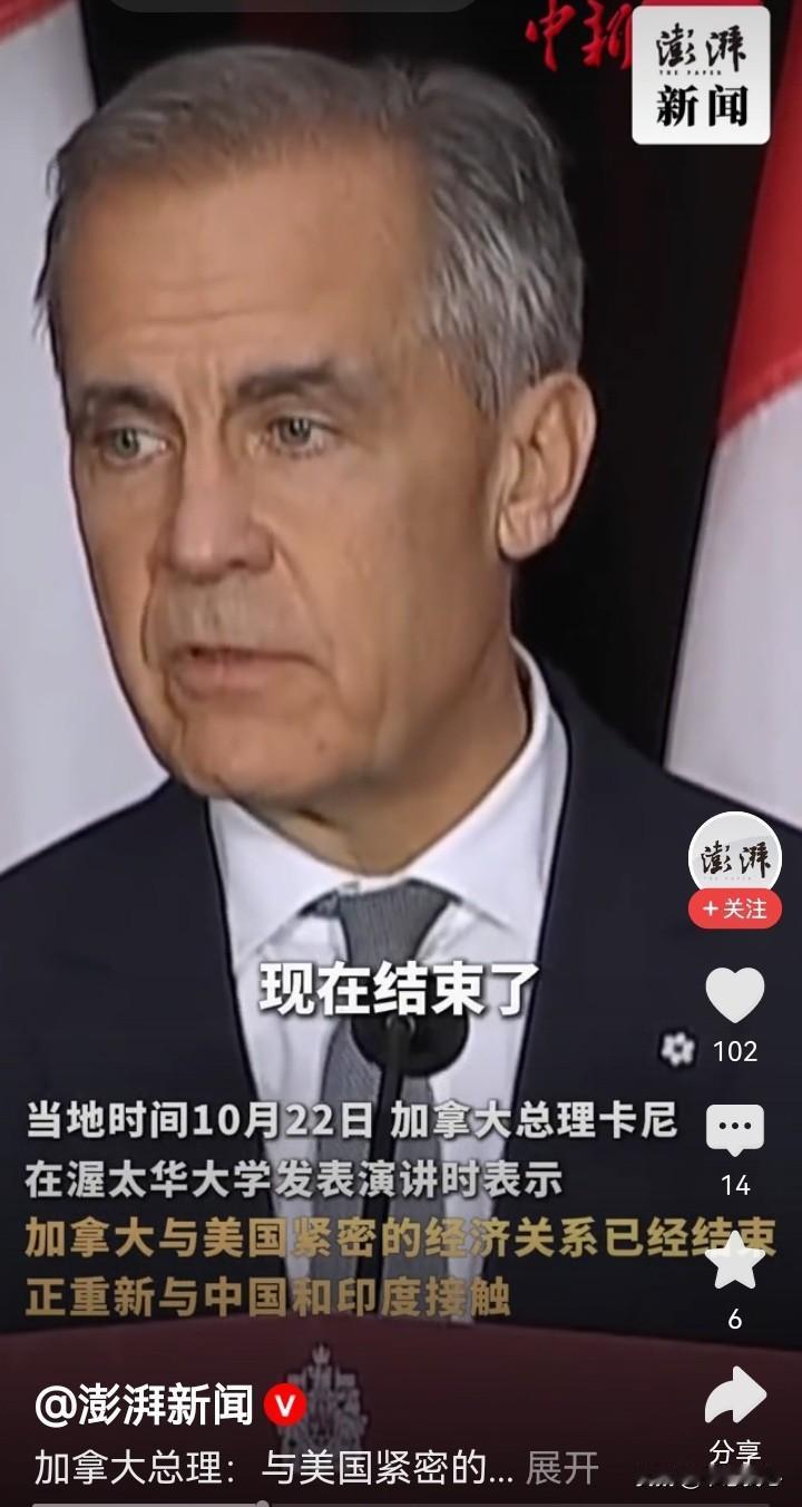 这时候想到中国了!7年前和鹰酱勾结,扣留我国华为的孟晚舟时,加拿大你又是怎么想的呢? 川普叫停了与加拿大的贸易谈判,加国总理卡尼表示,几十年来和鹰酱的美好时光,已经一去不复返,现在正在重新接触中国、印度等重要经济体…… 川普叫停贸易谈判,一点也不奇怪。反而是卡尼说的,在重新和中国、印度接触,让我奇怪了。 也由此可知,加拿大一直把经济社会发展押注美国,即使是中国这世界的第二大经济体,可能他们也不放在眼里啊! 由此也可以解释了,2018年12月1日,加国和鹰酱勾结,在加国的温哥华扣下了我们华为的孟晚舟女士,鹰酱意图引渡她,期间几经波折,过了1000多天,到2021年9月25日,孟晚舟才乘坐中国政府包机返回祖国。同日,人民日报评孟晚舟回国:没有任何力量能够阻挡中国前进的步伐。2022年12月,鹰酱的法院正式撤销孟晚舟“银行欺诈”等指控,且不能重新提起诉讼。 7年前,加国如此对我们的孟晚舟,他们当时会想到今天吗。不是我不明白,这世界变快啊!