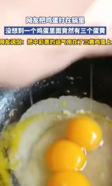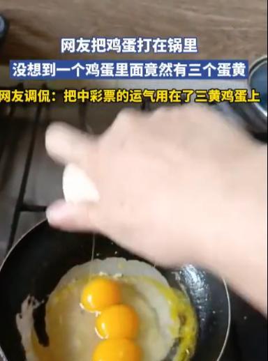 “开眼界了!”10月20日,河南,一女子随手拿起一个鸡蛋准备煎着吃,没想到这个鸡蛋打在锅里竟然有三个蛋黄,网友:把中彩票的运气用在了三黄鸡蛋上! 生活中买鸡蛋时有概率买到双黄蛋,不少人觉得买到双黄蛋已经算是幸运了,其实这并不是母鸡的“极限”,还有三黄蛋的存在。 一女子想煎鸡蛋吃,她起锅烧油,又随手从冰箱里拿出一个鸡蛋,女子见油温正好,单手将鸡蛋打在了小煎锅里。 鸡蛋碎裂后,蛋清蛋黄流进了锅里,令女子没想到的是,她随手拿的这个鸡蛋竟然是个三黄蛋,这也是女子第一次见三黄蛋,看着锅里三个蛋黄整齐排列在一起,她都有些不舍得吃了。 三黄蛋形成的原因与双黄蛋类似,母鸡如果排卵时激素紊乱,或者吃的太好,就有可能一次性排出三个成熟的卵子,裹上蛋白和蛋壳,三黄蛋就出生了。 多黄鸡蛋通常要比普通鸡蛋大,重量也会更重一些,但营养价值与普通鸡蛋一模一样,可以放心食用。 不少网友调侃女子是把中彩票的运气用在了遇见三黄蛋上,不得不说,三黄蛋在现实中确实很少见,女子是真的很幸运! 信息来源:《网友把鸡蛋打在锅里,没想到一个鸡蛋里面竟然有三个蛋黄》云观视角