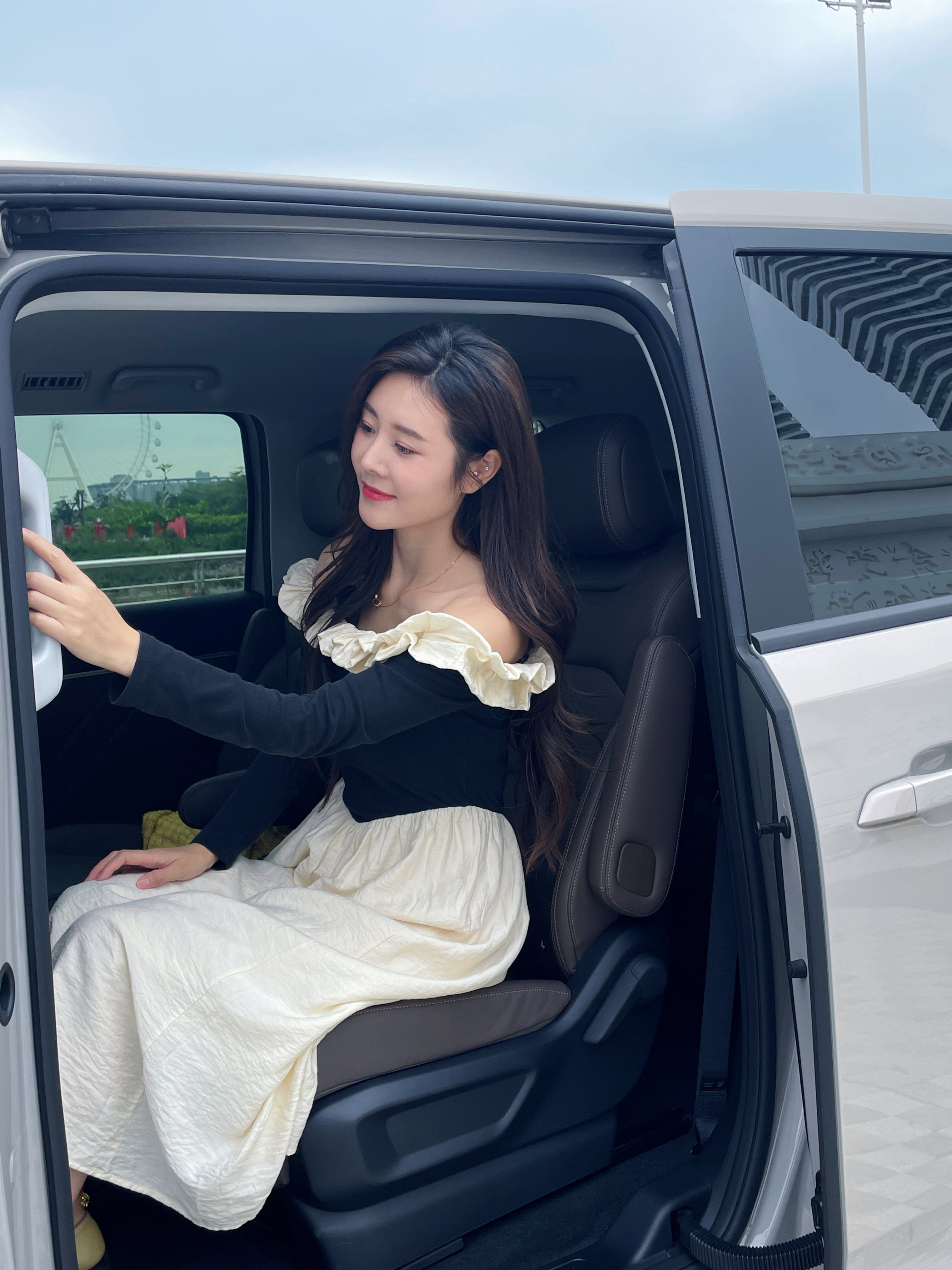 哈哈哈,又到北海玩星光730了!超大空间,看桂老师给大家演示,二排独立座椅有美女在看着挺商务的对吧哈哈!在保障二排的状态下,三排空间同样给力!第三排的座垫长度490mm,横向宽度1230mm,已经可以媲美很多轿车的后排了!靠背还可以再倾斜12度你受得了吗?而且从二排过第三排排过道也有230mm很方便!划重点10万级MPV唯一电动侧滑门,门一打开,手一搭上面的拉手,进入1.2米的高度车厢空间随随便便啦!