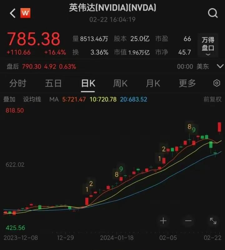 2月23日最新消息,美股大型科技股全部上涨,其中大家熟知的社交、电商平台脸书、亚马逊涨幅超过3%,而美国知名巨头企业特斯拉、谷歌、苹果的涨幅则超过1%。 这些都不算什么,最近炒的大热AI行业也有出色非常的表现。其中人工智能企业英伟达涨幅超过16%,整个公司市值增加2766亿美元,折合人民币约为19900亿元,成为市场史上最大单日市值增幅。 英伟达首席执行官黄仁勋凭借黄仁勋身家一年暴增4倍的词条而登上热搜。 据悉,黄仁勋的身家在本周四一天内暴增85亿美元到681亿美元。直接超越Charles Koch和钟睒睒,彭博全球富豪榜排名位列第21位。不仅如此,他还将凭借此次增幅成功跻身全球最富有的20个人之列。 不得不说,人工智能这把大火直接烧的世界顶级资本改变布局。Sora的出现更是给这把人工智能的火添了一把柴。 作为英伟达的创始人,黄仁勋在去年初还只是以135亿美元的净资产排名第128位。没想到,一年时间就猛追100多名,让一众资本大佬和商业大亨看呆了。 不出意外,英伟达应该会成为世界上首家市值破2万亿美元的芯片公司。也就是说它从1万亿美元突破至2万亿美元仅用了9个月。 至于后续英伟达还能否再次突破,还有待观察。不过根据现在的情况来看,英伟达远远没有达到它增长的临界点。