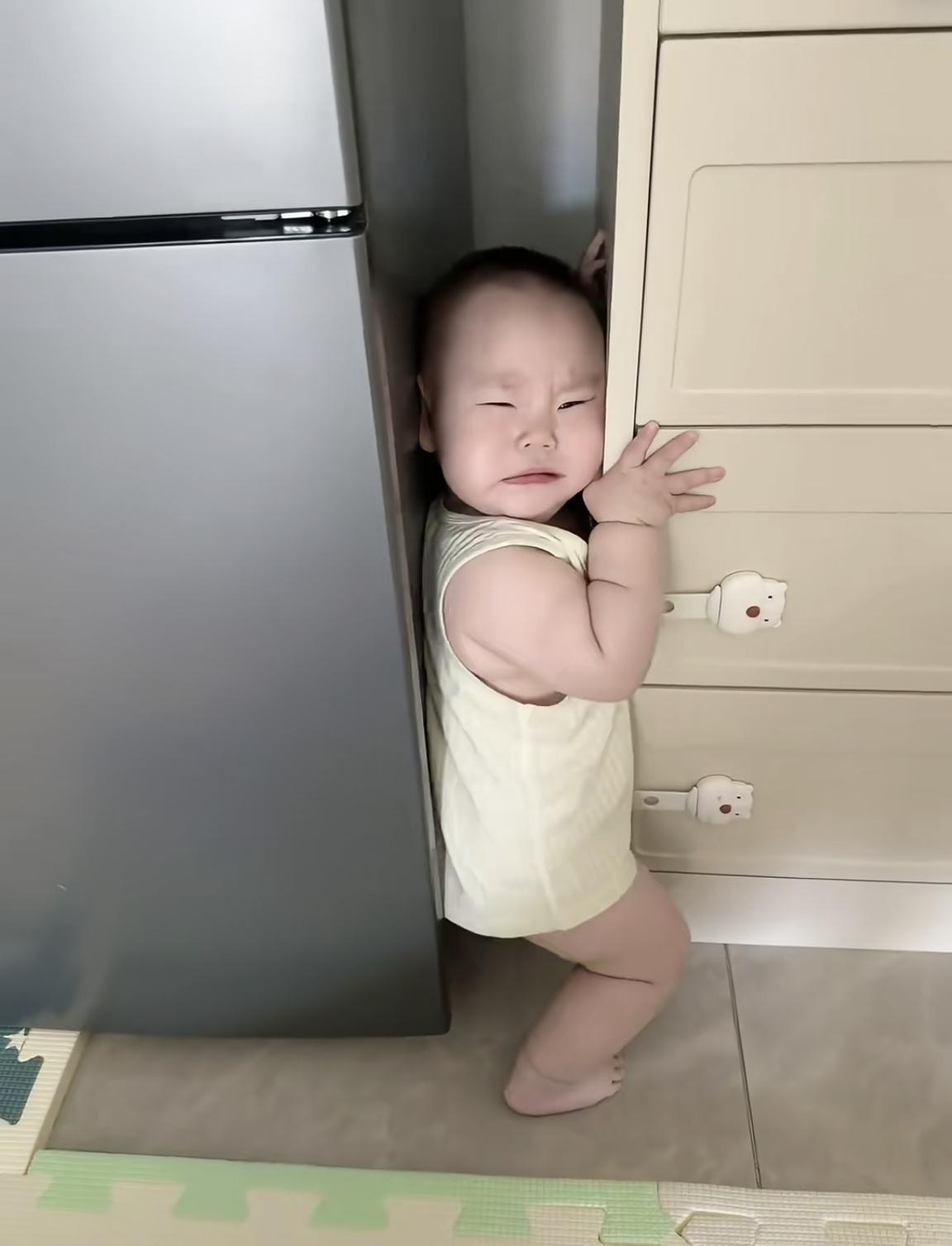 小孩子的好奇心必须满足这样他才会知道后果,被夹住出不来了吧!