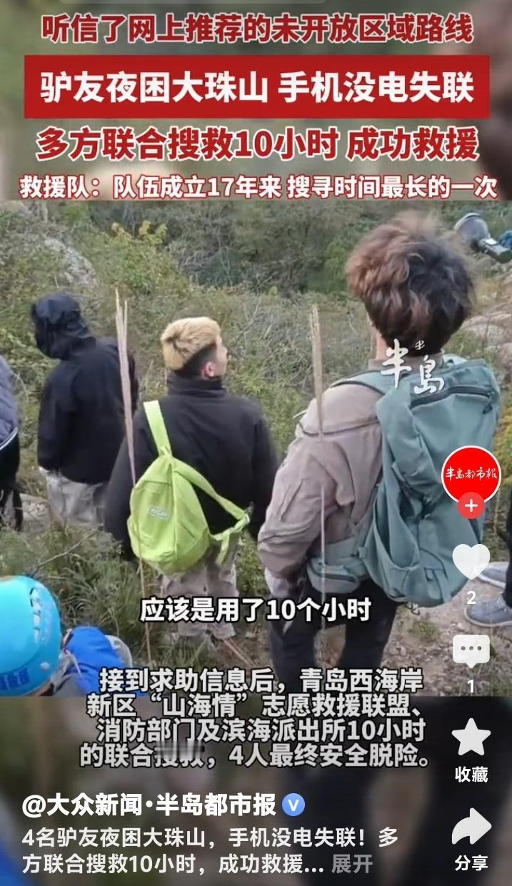 青岛大珠山惊魂10小时!四省驴友追随网红攻略误入未开放区域,深夜迷途手机断电引爆17年来最长救援行动 (来源:半岛都市报 /地点:山东青岛西海岸新区大珠山) 夜色如墨,大珠山的悬崖峭壁间传来微弱的呼救声。四名来自甘肃、福建、湖南、河北的年轻驴友,紧紧蜷缩在冰冷的岩石上。他们的手机电量早已耗尽,唯一的光源是头顶那轮惨白的月亮。十小时前,他们满怀期待地踏上一条被网络平台吹捧为“秘境捷径”的未开放路线,却不知自己正一步步走向危险的深渊。 这原本是一场充满诗意的秋日探险。社交平台上,那些加了滤镜的风景照和“小众路线攻略”像蛊惑人心的魔咒,让这群年轻人忽略了官方警示牌的存在。他们踩着碎石,沿着陡坡向上攀爬,直到夕阳西沉,才发现自己被困在半山腰——前无去路,后无退路,手机信号时断时续,最终彻底陷入黑暗。 “我们以为只是抄个近道,没想到差点把命搭进去。”事后,一名驴友声音颤抖地回忆。那一刻,恐惧如潮水般涌来:山风呼啸而过,远处传来不知名动物的嚎叫,而温度正急剧下降。他们试图点燃枯枝取暖,却因湿气太重屡屡失败。绝望中,有人用最后1%的电量拨通了求救电话。 警报拉响的瞬间,青岛西海岸新区的救援力量迅速集结。“山海情”志愿救援联盟、消防队员、滨海派出所民警带着探照灯和绳索冲进夜色。队长徐公安眉头紧锁:“这是队伍成立17年来最漫长的一次搜救——地形复杂,能见度几乎为零,每一步都像在刀尖上行走。”救援人员的手电光在密林中织成一张生命之网,呼喊声在山谷间反复回荡。 与此同时,山下的志愿者默默煮好姜茶,心理医生随时待命。社交媒体上,无数网友彻夜刷新消息,有人痛斥“网红攻略害人不浅”,也有人感慨“年少轻狂谁都有”。这场救援早已超越个体事件,折射出当代年轻人对“逃离日常”的渴望与自然规则的残酷碰撞。 凌晨四点,当救援队终于找到虚弱的四人时,一名消防员脱下外套披在驴友身上,轻声说:“下次记得走正道,风景再美也得有命看。”这句话像一记重锤,敲在每个人心上。获救者相拥而泣,而救援队员的鞋底已磨破,手套上沾满血迹。 这场风波背后,是更深层的社会命题:当算法推荐与流量狂欢绑架了冒险精神,我们该如何平衡自由与责任的尺度?那些被点赞簇拥的“野路子”,或许正是埋下隐患的温床。有网友一针见血:“不是所有风景都值得用生命打卡,真正的勇敢源于对自然的敬畏。” 太阳升起时,大珠山恢复了往日的宁静。但这场惊心动魄的救援,已化作一记警钟——在追求诗和远方的路上,别让盲目成为青春的代价。 青岛大珠山驴友迷途 引爆搜救十小时纪录野外安全 网红风险