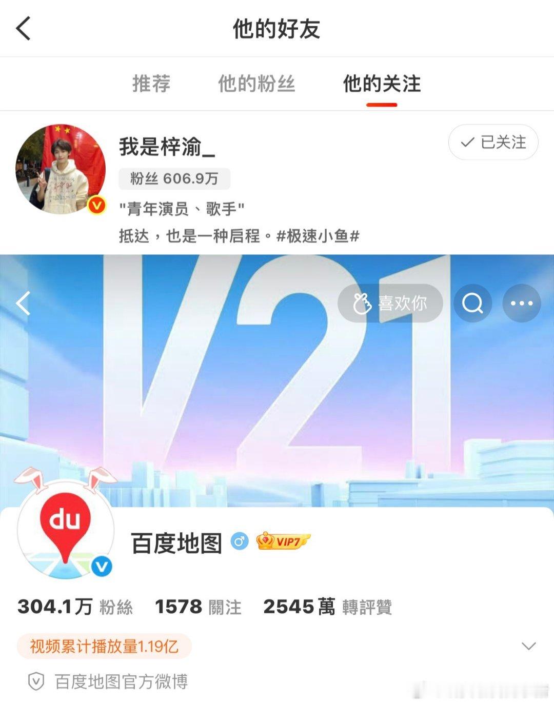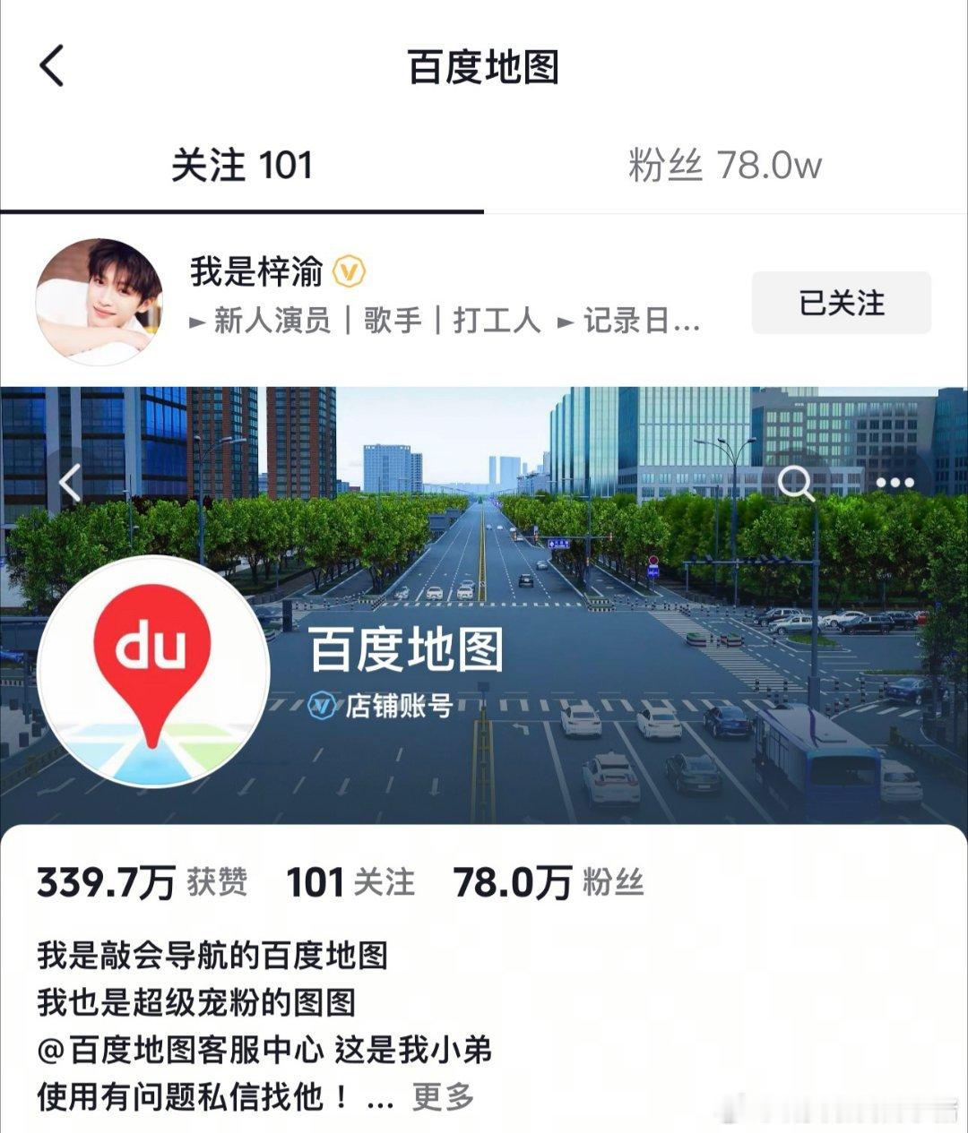 百度地图关注了梓渝,却是田嘉瑞的代言[震惊][震惊]