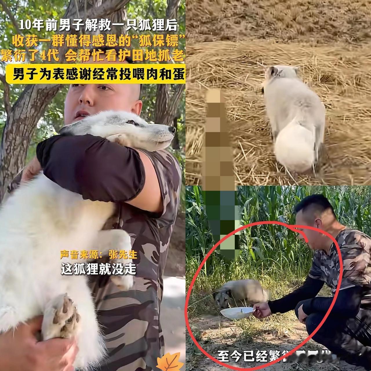 “彻底解释不清了!”黑龙江,男子在10年前救了一只白狐,没想到之后白狐就不肯走了,还生下了小狐狸,那只白狐带着幼崽找上门,从此就扎下了根! 如今狐群都传到第四代,最多时有二十多只。往年稻田里的老鼠闹得凶,自从狐狸来守着,夜里连鼠影都没了,收成比邻居好,还省了驱虫药钱 ! 更绝的是,大哥生病卧床时,老狐狸连续三晚在窗外转圈叫,直到听见他回应才安心离开 ! 都说善有善报,可这哪是简单的回报,是狐狸把“你救我一次”,换成了“我护你世代” !