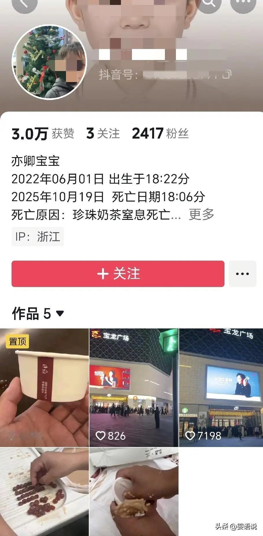 孩子的死亡被家长当成筹码。翻看孩子父母的抖音,能感受到他的崩溃。但是他反复强调珍珠太粘,导致孩子窒息。 失去孩子的痛苦,外人确实难以体会, 但冷静下来想,这件事不能只怪珍珠 4岁的孩子喝奶茶,还同时进行蹦床这样的剧烈活动,本身就存在高风险 边运动边喝东西本身就容易呛到 作为家长,看护的责任无法推脱 唉!看到这样的悲剧确实揪心 给其他家长一些建议: 五岁以下宝宝尽量避免食用珍珠,果冻等易呛食物 吃饭喝水时保持安静,不要边玩边吃,运动过程中进食,容易发生意外 建议学习海姆立克急救法,关键时刻能救命 孩子的安全无小事 多一份细心就多一保障 愿每个宝宝都能平安长大 不知道大家怎么看?欢迎在评论区理性讨论!