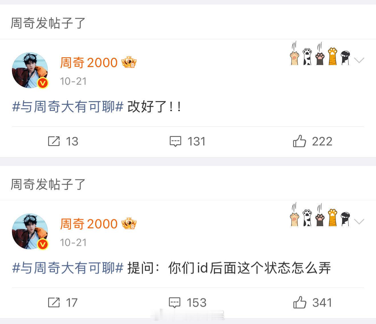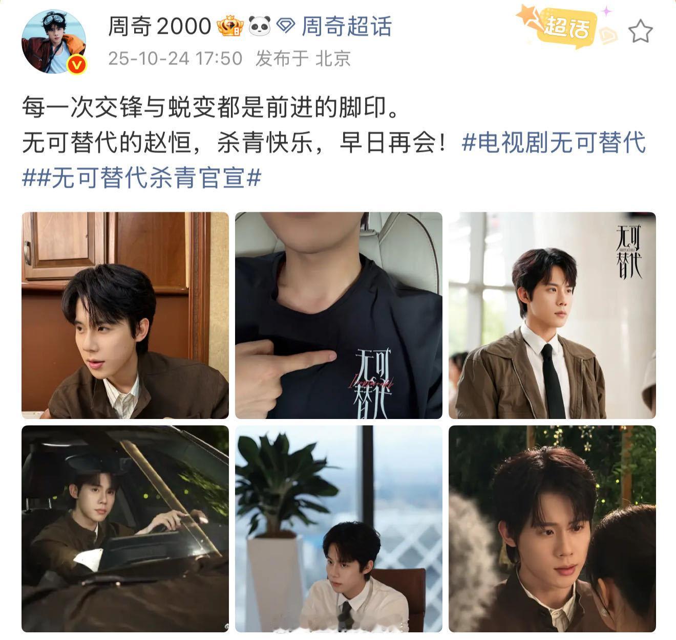 周奇把状态改成杀青版 好好好,这个新鲜的官宣杀青模式也是让你小子给用上了!微博状态一秒修改,怪会玩儿的!周奇[超话]