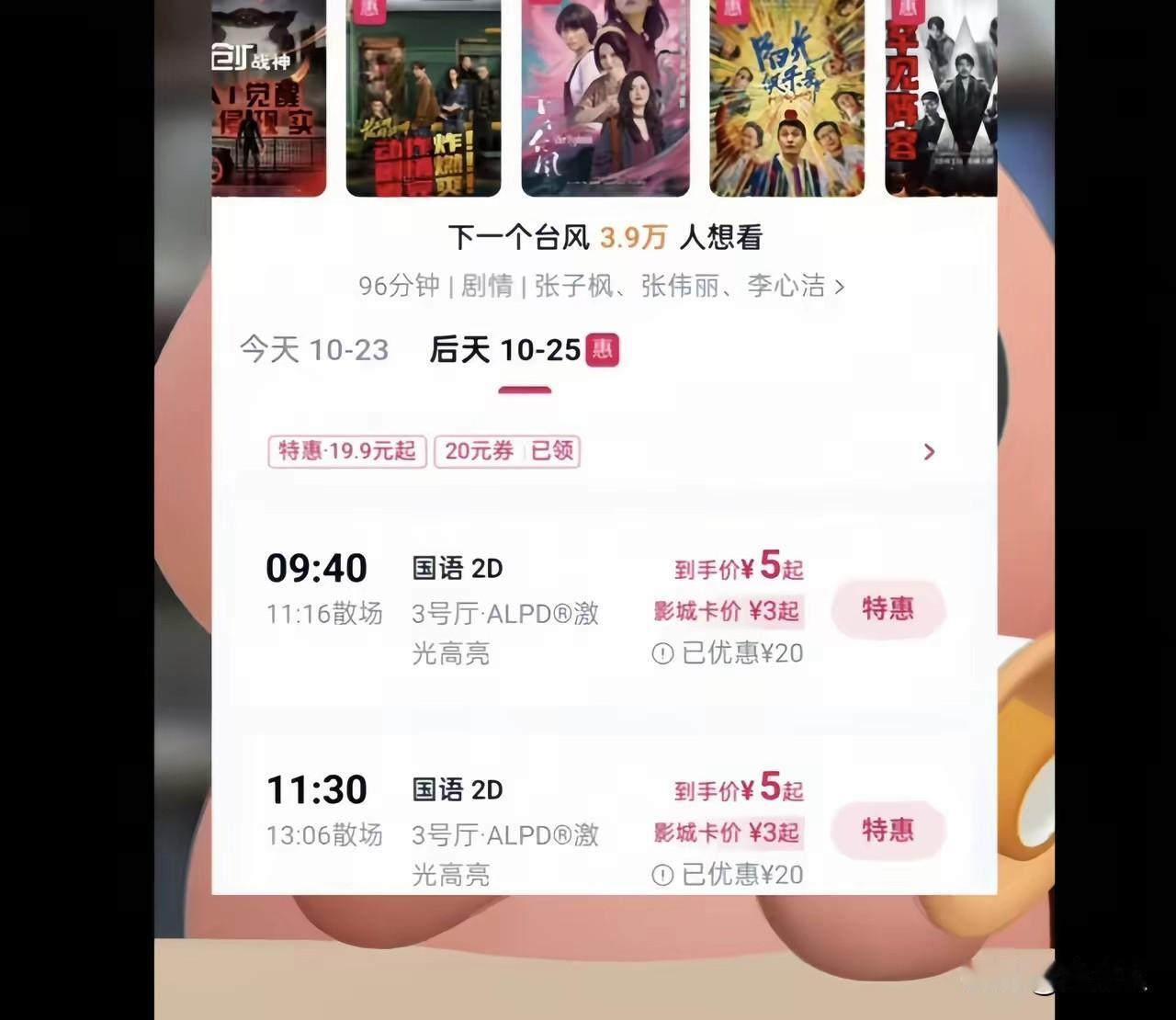 下一个台风零元购 五块钱就能看? 方励这片子,票价定这么低,我真觉得 有点亏! 老话说“好货不便宜”,这话放电影这儿特实在。本来是拿得出手的好作品,卖五块甚至白送,反而让不少人觉得“不值钱”,压根不把它当回事儿。而且这么低的价,别说赚大钱了,说不定连成本都难回来,太可惜了方励的本事。 其实他朋友多,不如先喊上家人朋友去捧场,先把口碑和场子热起来。好电影就该有匹配的价值,别用低价拉好感,最后反而埋没了作品的好。 你要是看到好导演的电影卖超低价,第一反应是觉得捡便宜,还是会担心“这么便宜会不会不好看”?