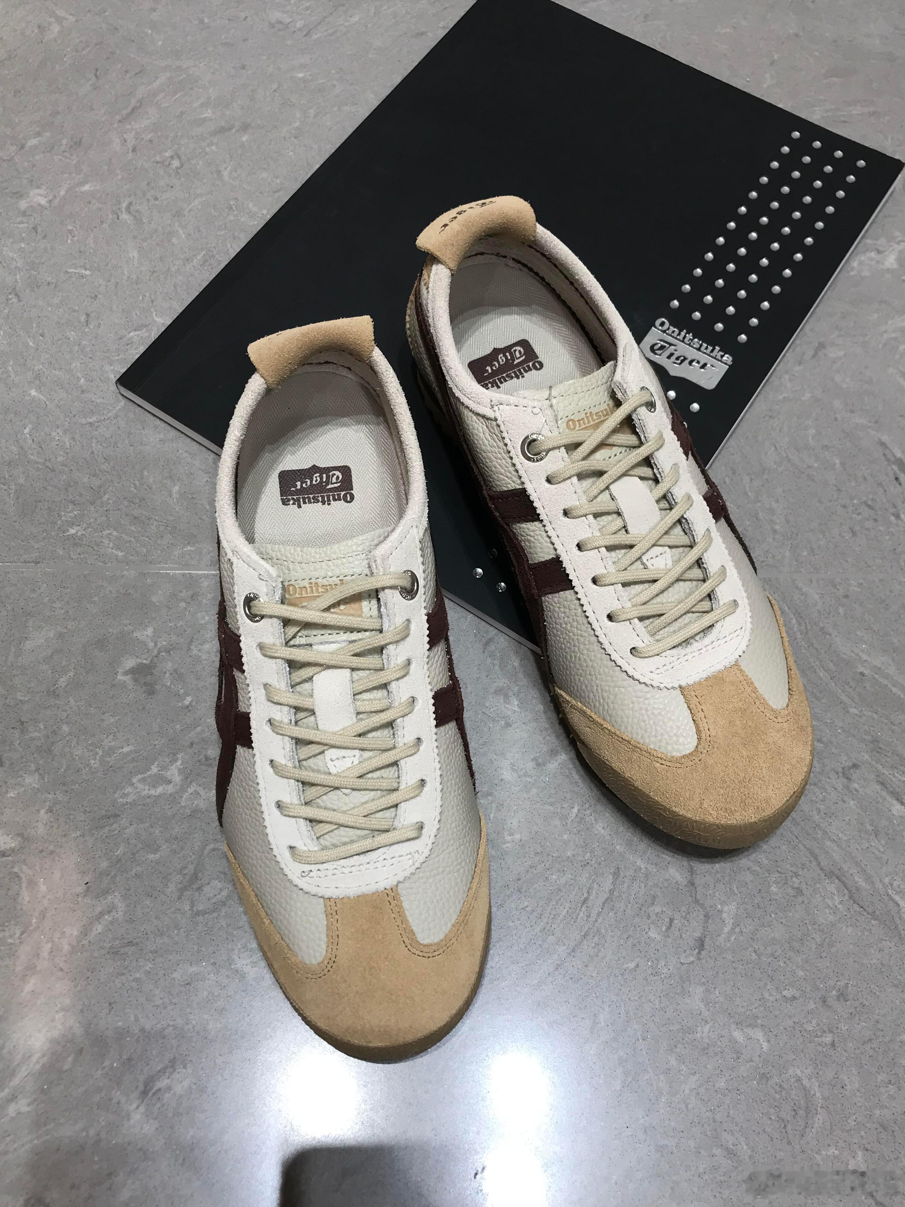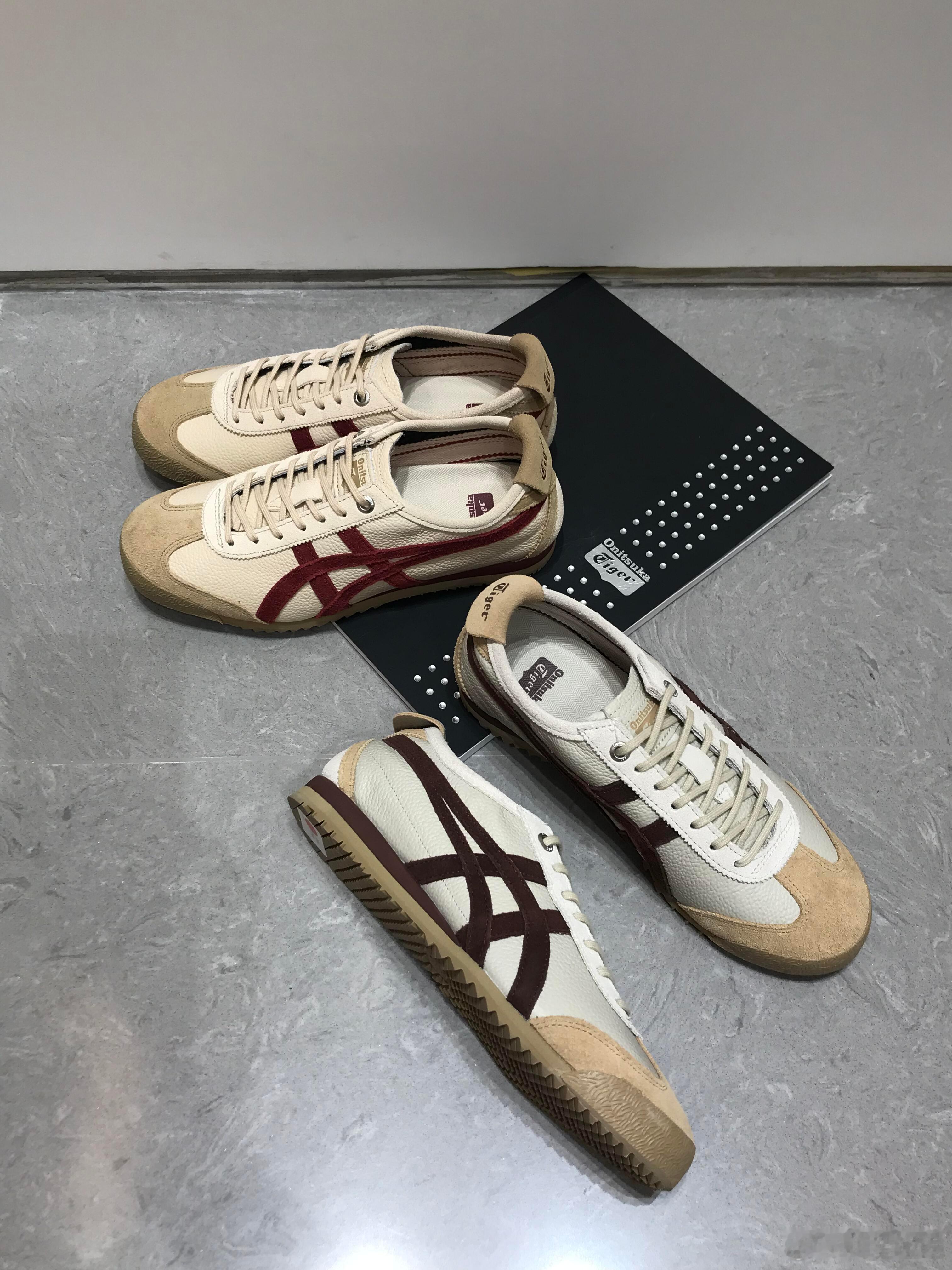 这双Onitsuka Tiger经典运动鞋以米白色皮革鞋面为主,搭配标志性的酒红色侧边条纹,形成复古而醒目的视觉对比。鞋舌内侧清晰印有“G/T”与品牌标识,彰显纯正血统。米黄色橡胶鞋底边缘带有独特的齿状纹理,后跟的深红色点缀更添设计巧思。鞋子采用低帮轮廓与米白鞋带,整体造型简约流畅。搭配浅灰大理石台面与黑底银点书籍背景,烘托出其历久弥新的日式美学。无论是日常休闲或潮流穿搭,都能轻松展现低调优雅的复古运动风格。时尚鞋履时尚奢品