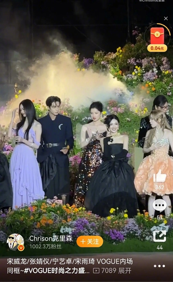 刘亦菲呆了。杨幂也惊住了,戚薇为了搏出彩,竟然弄了件一百斤的真花衣服穿身