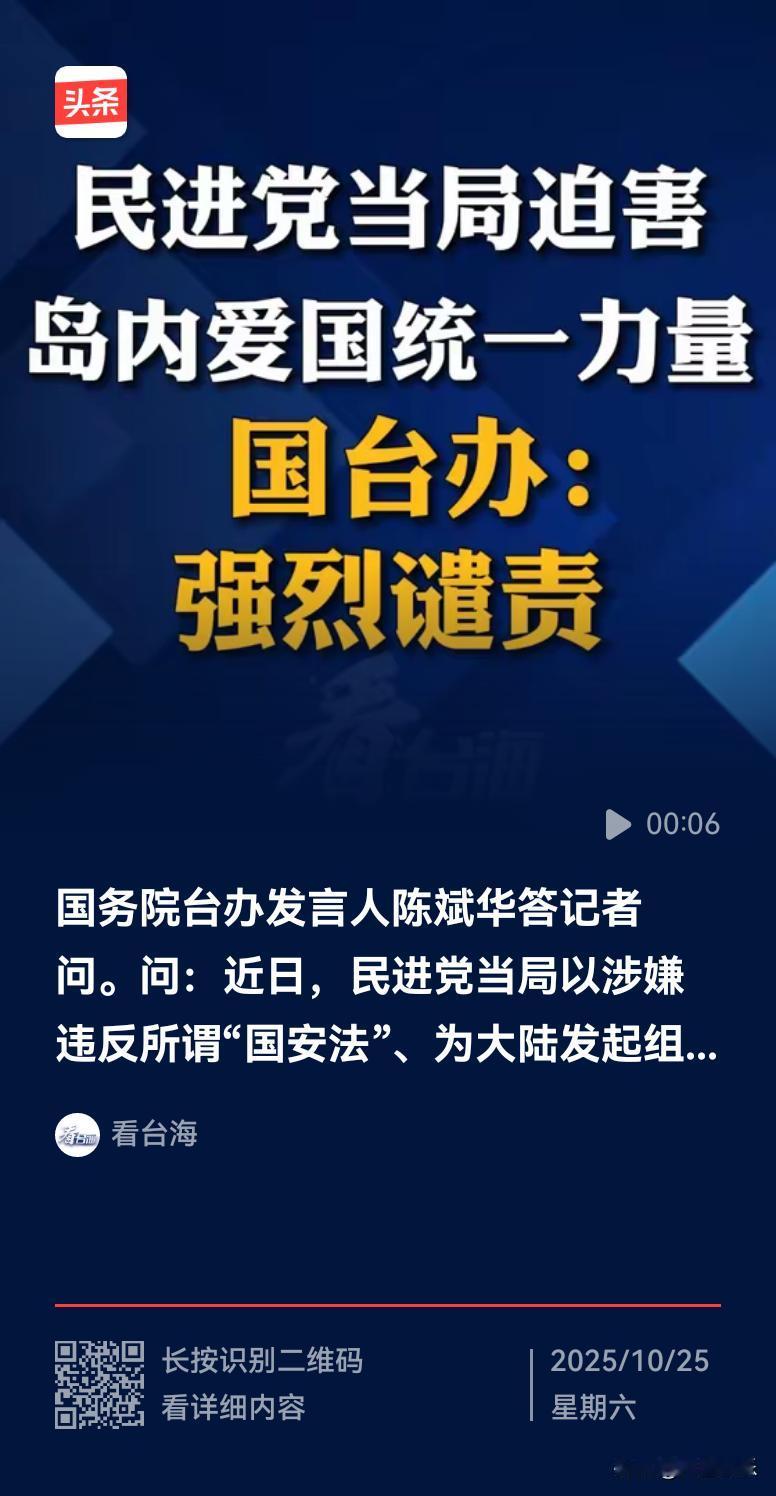 国台办谴责台当局迫害爱国统一力量 国台办对台当局迫害爱国统一力量的谴责太有必要了!就像10月24日,针对台当局判退役将领高安国7年6个月徒刑这事,国台办发言人强烈谴责这一滥用司法的恶行。 台当局不断打压异己,迫害反对“台独”、主张统一的组织和人士,完全是为了一党私利。他们伙同媒体、网军搞网络霸凌,公器私用、不择手段。这哪有什么民主自由,分明是“绿色恐怖”。那些充当“台独”爪牙的人,站在了历史正义对立面,注定会遭到历史清算和法律严惩,“台独”行径终究不得人心!