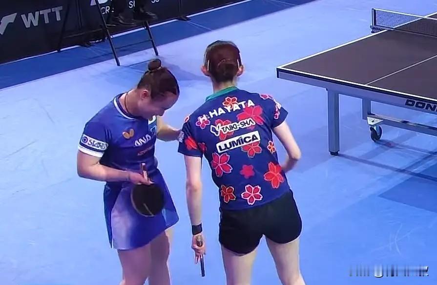 提气!覃宇轩/纵歌曼爆冷击败一号种子早田希娜/伊藤美城 昨天日本内战, 打的非常激烈, 早田打张本美和的时候, 耗尽了所有精力。 今天早田就像软面条, 让国乒小将组合, 在先失一局的情况下, 连扳三局! 顺利晋级决赛, 与石洵瑶一组争夺冠军!