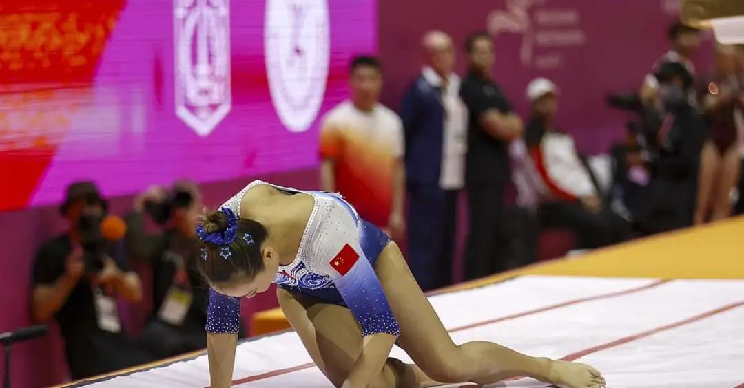 太心疼了!26岁的邓娅兰在体操世锦赛跳马决赛中出现重大失误,第一跳直接跳过马身,