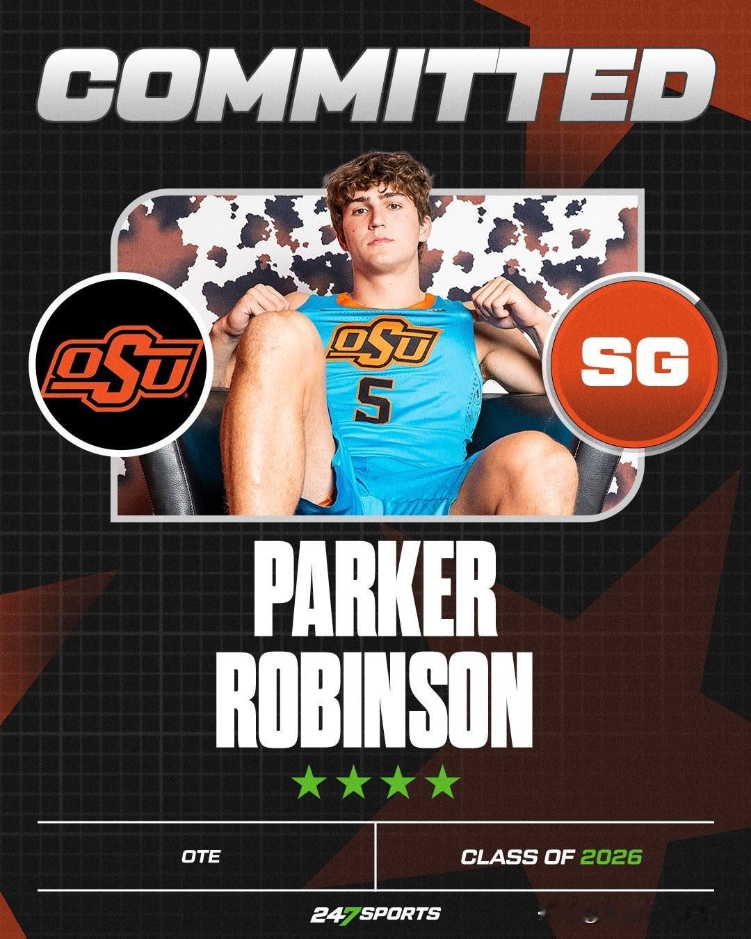 四星分卫Parker Robinson宣布承诺NCAA男篮 俄克拉荷马州立,来自马里兰州,身高6-5=196,效力于佐治亚州亚特兰大Overtime Elite联盟,表示教练组非常出色,他很喜欢他们,球队这届收到的第三位加盟者,之前还有四星内线Latrell Allmond与小前锋Jalen Montonati。