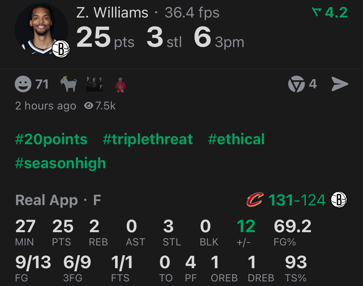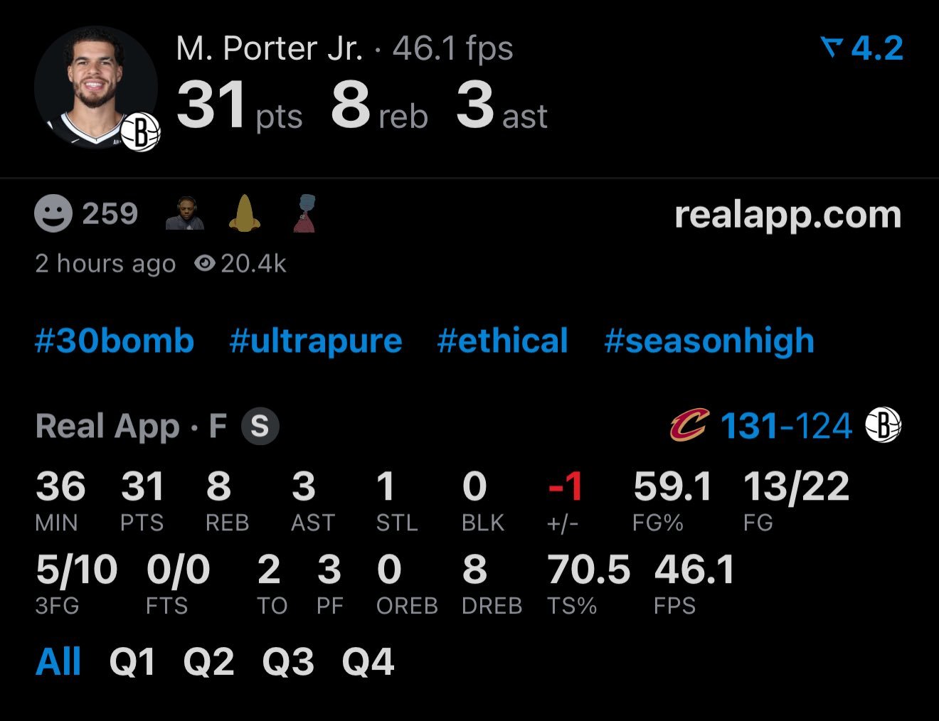 靠着末节12中7的三分,篮网一度追到只落后1分(最大分差25),扎威末节三分5中3,杰明4中3!但最终米切尔回来还是稳住了骑士的阵脚,帮助他们拿到赛季首胜。以及扎威那次底角三分出手被米切尔打到,可能会引起一轮关于high five如何吹罚的讨论。